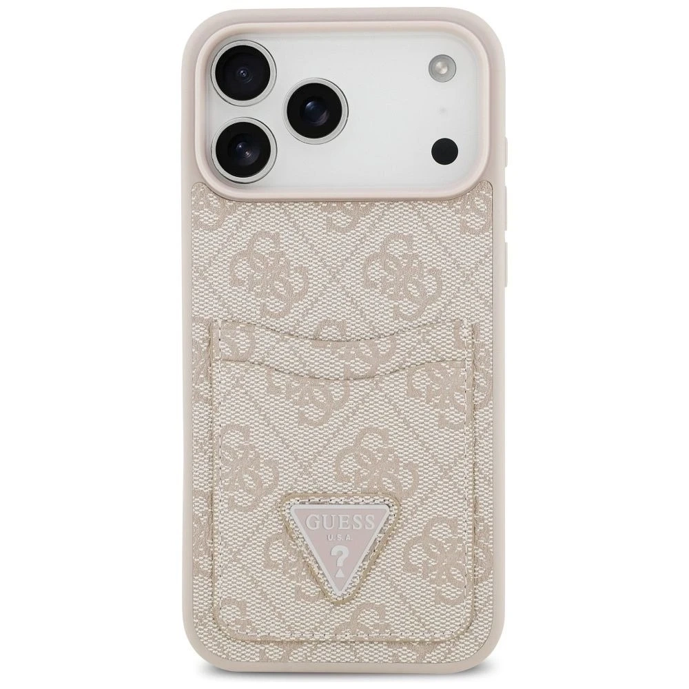 Etui Guess 4G Double Card Triangle do iPhone 17 Pro Max to połączenie modnego wyglądu i praktycznych rozwiązań. Wykonane w eleganckim różowym kolorze z charakterystycznym monogramem 4G i trójkątnym logo Guess, nadaje smartfonowi wyjątkowego charakteru. To idealne rozwiązanie dla osób, które chcą wyróżnić swój telefon i jednocześnie zadbać o jego bezpieczeństwo.