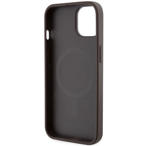 Kolekcja została ozdobiona przy użyciu najwyższej jakości printu G Cube, co sprawia iż jest to doskonała propozycja dla wymagających osób ceniących ekskluzywny wygląd i designerskie dodatki. Charakterystyczny dla domu mody Guess motyw G Cube to bardzo pożądany wzór zaczerpnięty wprost z najnowszych kolekcji tej marki. Duże logo marki Guess umieszczone na kontrastującym względem reszty etui dolnym pasku podkreśla elitarność kolekcji, stanowi jego piękną ozdobę i jednocześnie jest potwierdzeniem doskonałej jakości i auentyczności pokrowca.Etui zostały wyposażone w magnetyczny pierścień kompatybilny z bezprzewodową ładowarką MagSafe, zapewniając szybkie i łatwe ładowanie. Wbudowane w pokrowce magnesy są idealnie dopasowane do telefonu uzytkownika i zapewniają mocne przyleganie iPhone'a do ładowarki MagSafe. Magnetyczny pierścień został ukryty po wewnętrznej częsci pokrowca i perfekcyjnie komponuje się kolorystycznie z całym produktem.