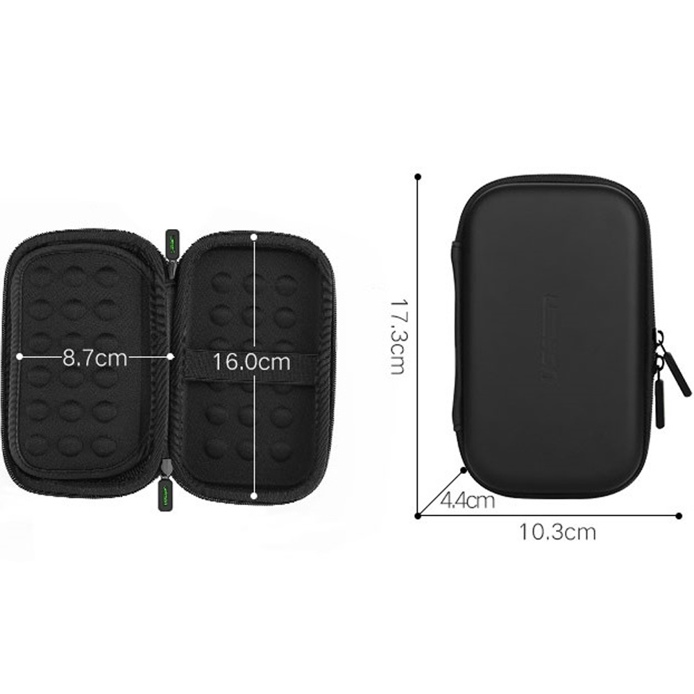 Etui firmy UGREEN, w którym zmieścimy dysk twardy SSD, a także różne akcesoria, takie jak: ładowarka sieciowa, kabel USB, pendrive, karty pamięci, adaptery, itp. Wykonane z trwałego materiału EVA. Jest wodoodporne i kompaktowych rozmiarów, co sprawia, że możemy je zabrać w każdą podróż.