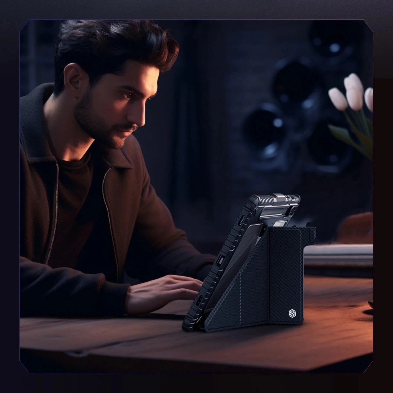Niezależnie od tego, czy oglądasz filmy, czytasz przepisy kulinarne, czy wykonujesz zdjęcia, etui Nillkin Bumper Leather Case Pro dostosowuje się do Twoich potrzeb. Pięć możliwych ustawień klapki sprawia, że każda czynność stanie się bardziej komfortowa i przyjemna.