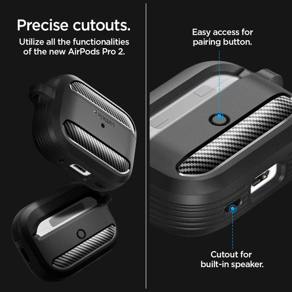 Etui ochronne Spigen Rugged Armor do Apple AirPods Pro 1 / 2 Matte Black Etui ochronne Spigen Rugged Armor do Apple AirPods Pro 1 / 2 wykonane z wytrzymałego i elastycznego tworzywa TPU odpornego na ścieralność. Case pokryty jest błyszczącym włóknem węglowym, które tworzy elegancką teksturę karbonową. Kup 8 szt. , oszczędź 16 % - 43,37 zł / szt.