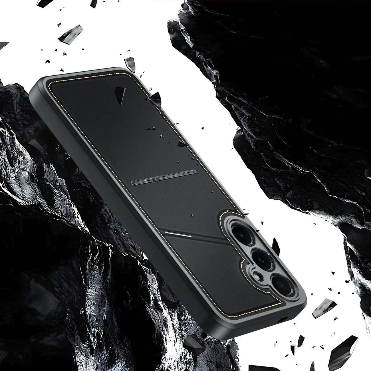Dzięki wbudowanej podstawce możesz wygodnie oglądać filmy, prowadzić wideorozmowy lub pracować w trybie poziomym, bez konieczności trzymania telefonu w dłoni. Zintegrowane sloty na karty pozwalają przechowywać dokumenty, karty płatnicze czy gotówkę – wszystko w jednym miejscu.