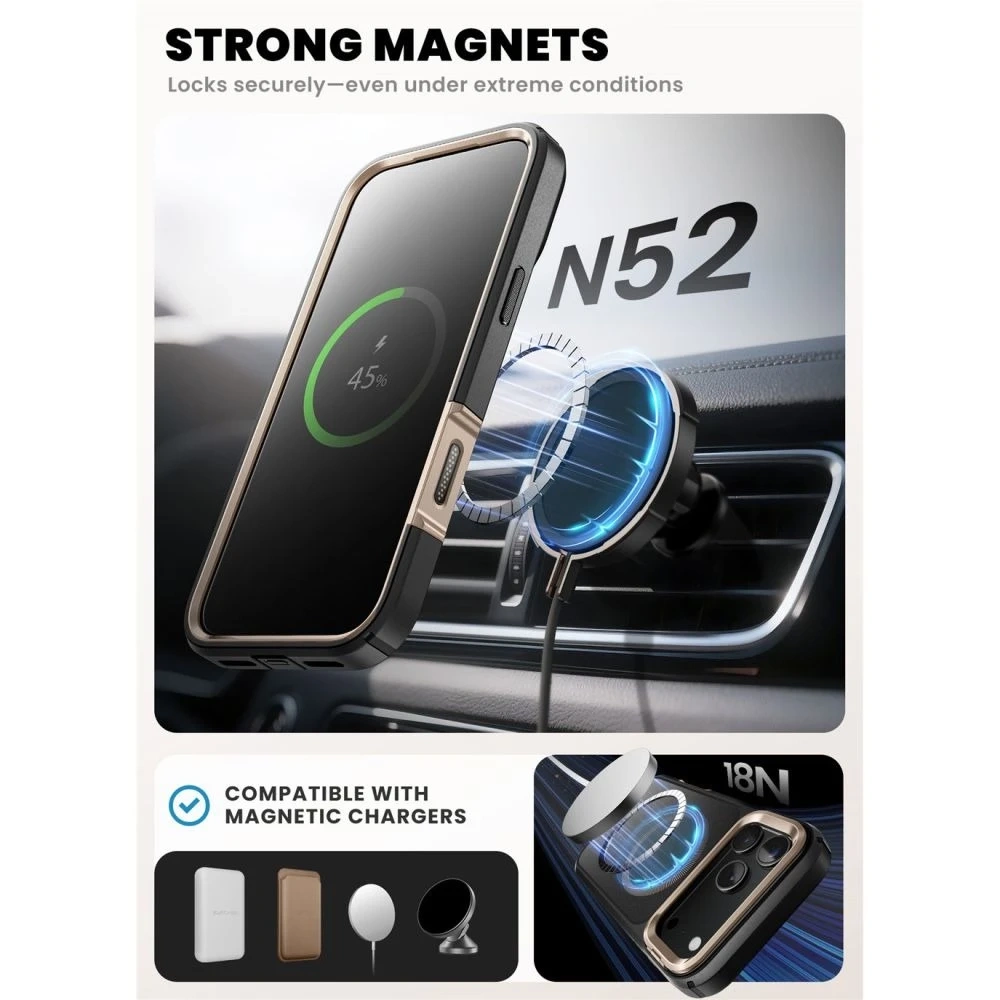 Etui Supcase Ares Flip Mag MagSafe do iPhone 17 Pro w kolorze Desert Gold to propozycja dla użytkowników, którzy oczekują maksymalnej ochrony i funkcjonalności w nowoczesnym wydaniu. To połączenie wytrzymałych materiałów i przemyślanych rozwiązań, które tworzą solidną barierę ochronną wokół smartfona.