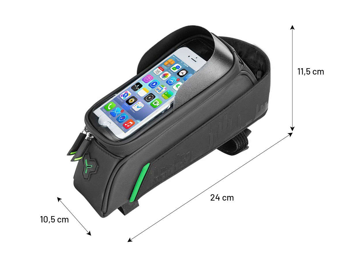 Montaż sakwy RockBros odbywa się na ramie, przy kierownicy. Dodatkowo przez specjalne przezroczyste okienko możemy mieć cały czas wgląd w nawigację w telefonie, ponieważ jest ono kompatybilne z ekranem dotykowym naszego urządzenia o maksymalnej przekątnej do 7 cali bez konieczności wyjmowania go.