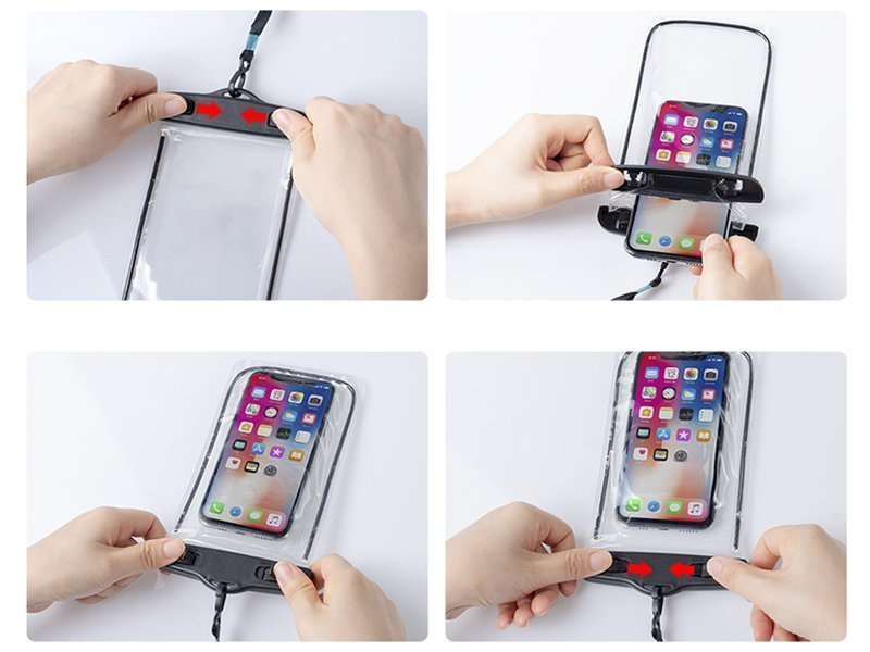 Dodatkowo producent do każdego etui dorzucił smycz, dzięki której możesz bezpiecznie powiesić je na szyi czy też dłoni. Etui jest bardzo funkcjonalne, doskonale chroni Twój telefon, dokumenty, dowód osobisty, paszport, karty kredytowe, pieniądze i wiele innych przed zalaniem i wilgocią. Posiada specjalne obramówki wypełnione powietrzem, dzięki czemu unosi się na powierzchni wody