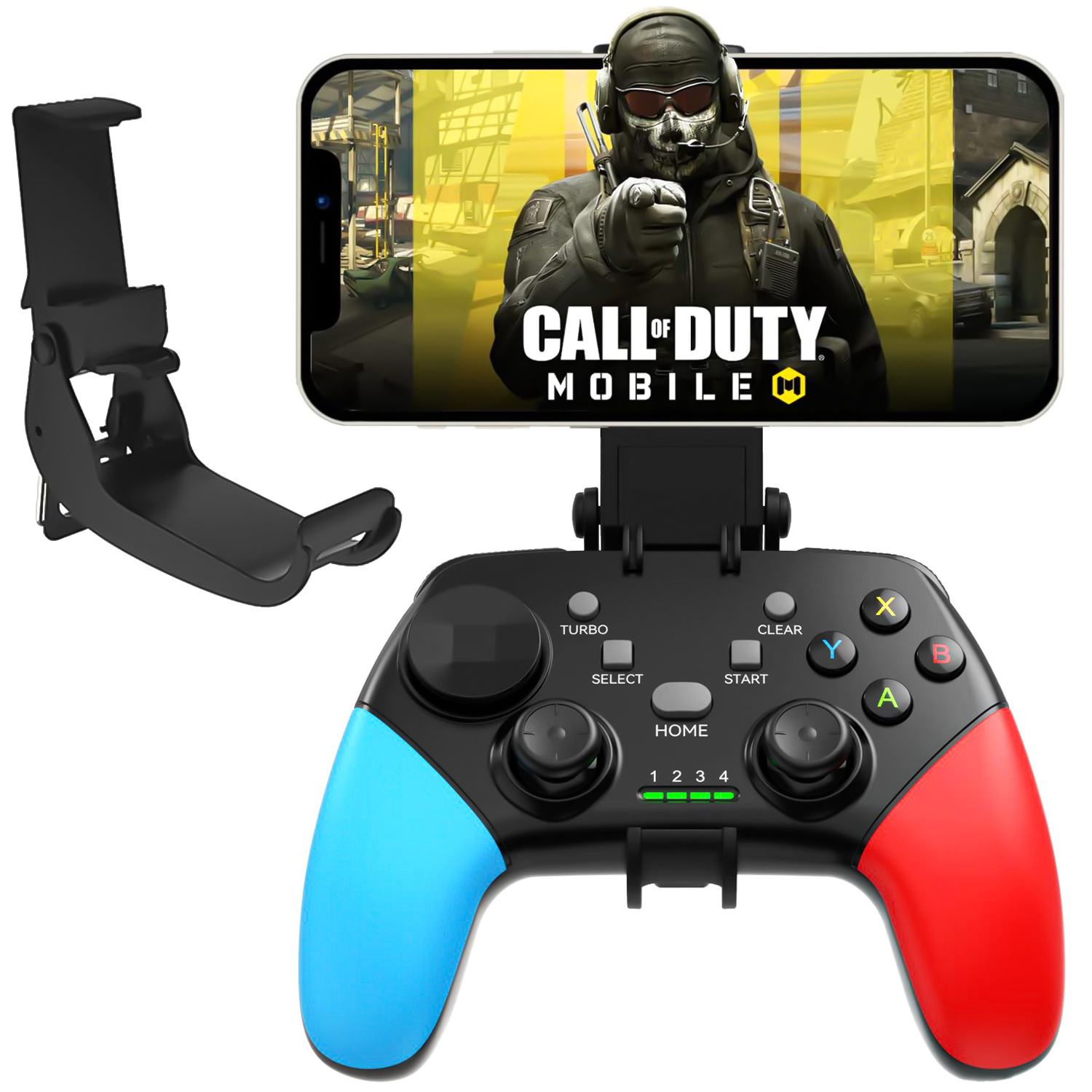 - W zestawie: Kontroler, Kabel USB typ C, Uchwyt dopasowany do pada na telefon
