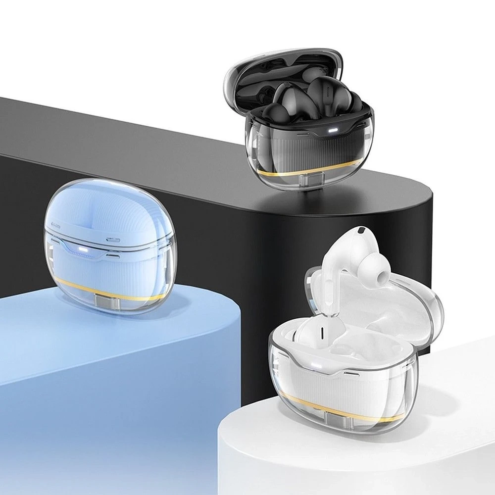 Podręczne, wygodne w użyciu słuchawki TWS dobrze dopasowują się do uszu, dzięki czemu nawet po wielu godzinach korzystania z nich nie odczujesz dyskomfortu. Wykorzystaj łączność Bluetooth do słuchania muzyki czy audiobooków, a także do prowadzenia rozmów, co umożliwia wbudowany mikrofon. Przenośne etui z funkcją ładującą gwarantuje, że słuchawki będą zawsze naładowane, a dzięki kompaktowej konstrukcji możesz zabrać je w dowolne miejsce i bezpiecznie przechowywać.