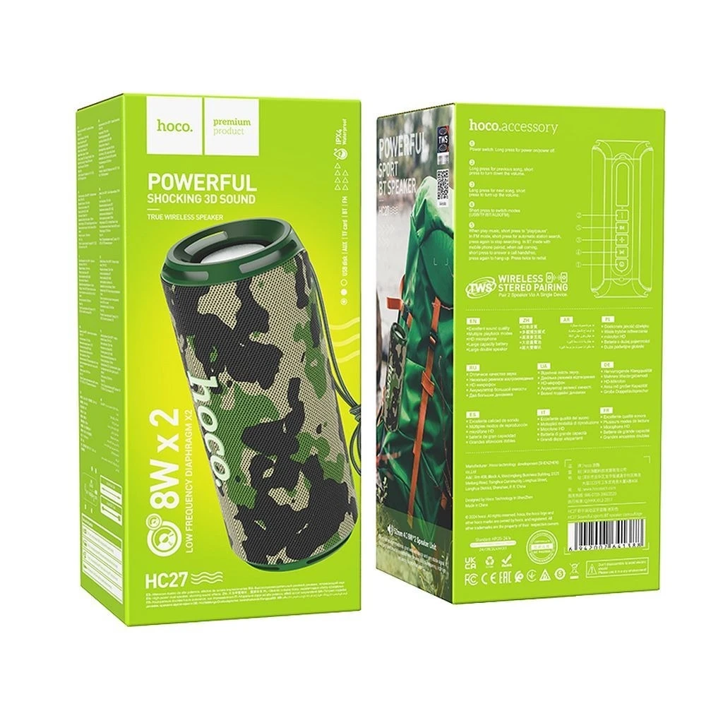 Ciesz się ulubioną muzyką wszędzie, gdzie jesteś, dzięki przenośnemu głośnikowi Hoco HC27 Moro. Wyposażony w Bluetooth 5.4, pozwala na łatwe połączenie z urządzeniami audio, zapewniając doskonałą jakość dźwięku. Głośnik charakteryzuje się potężnym dźwiękiem dzięki dwóm głośnikom 2 x 8W, które zapewniają czysty i pełny dźwięk.