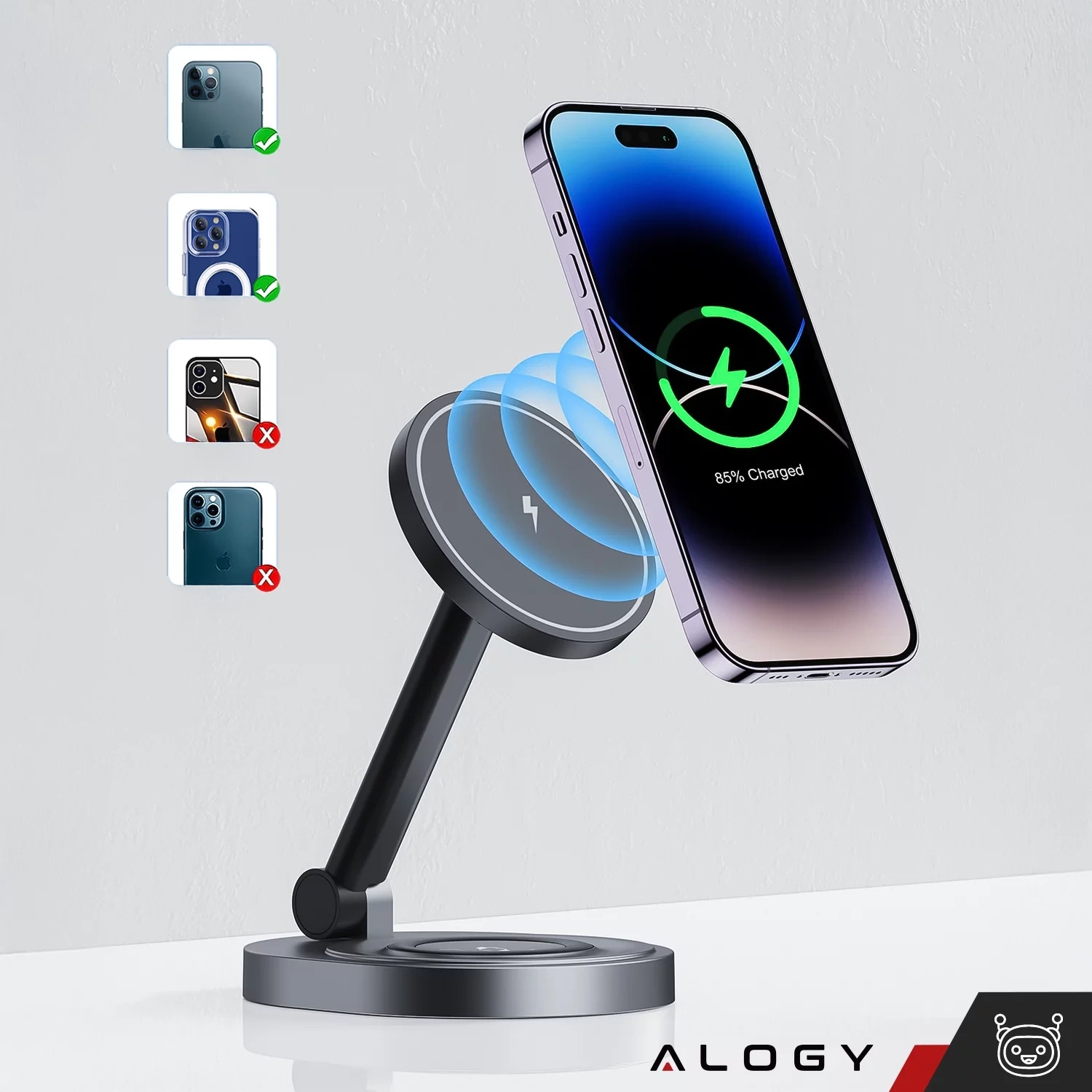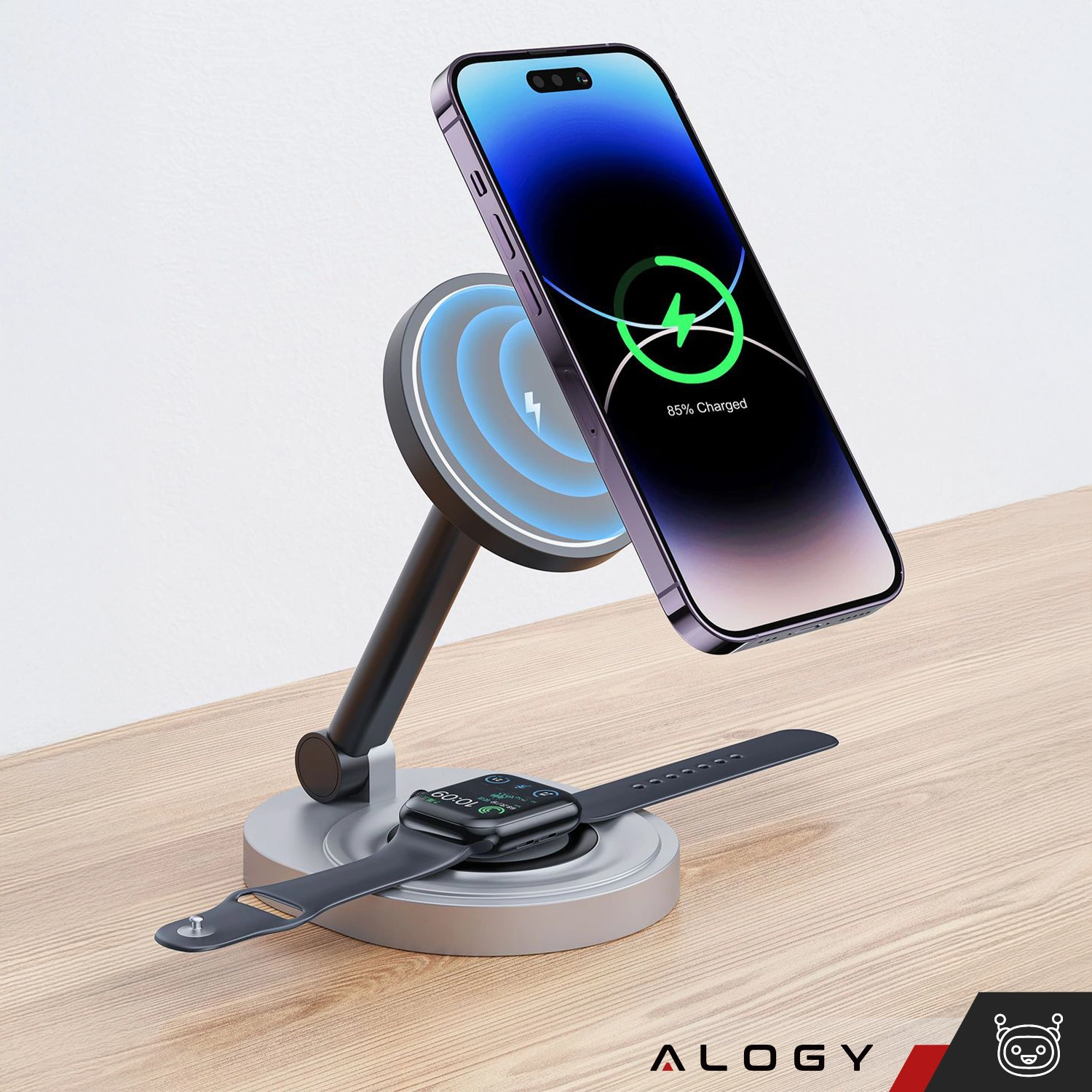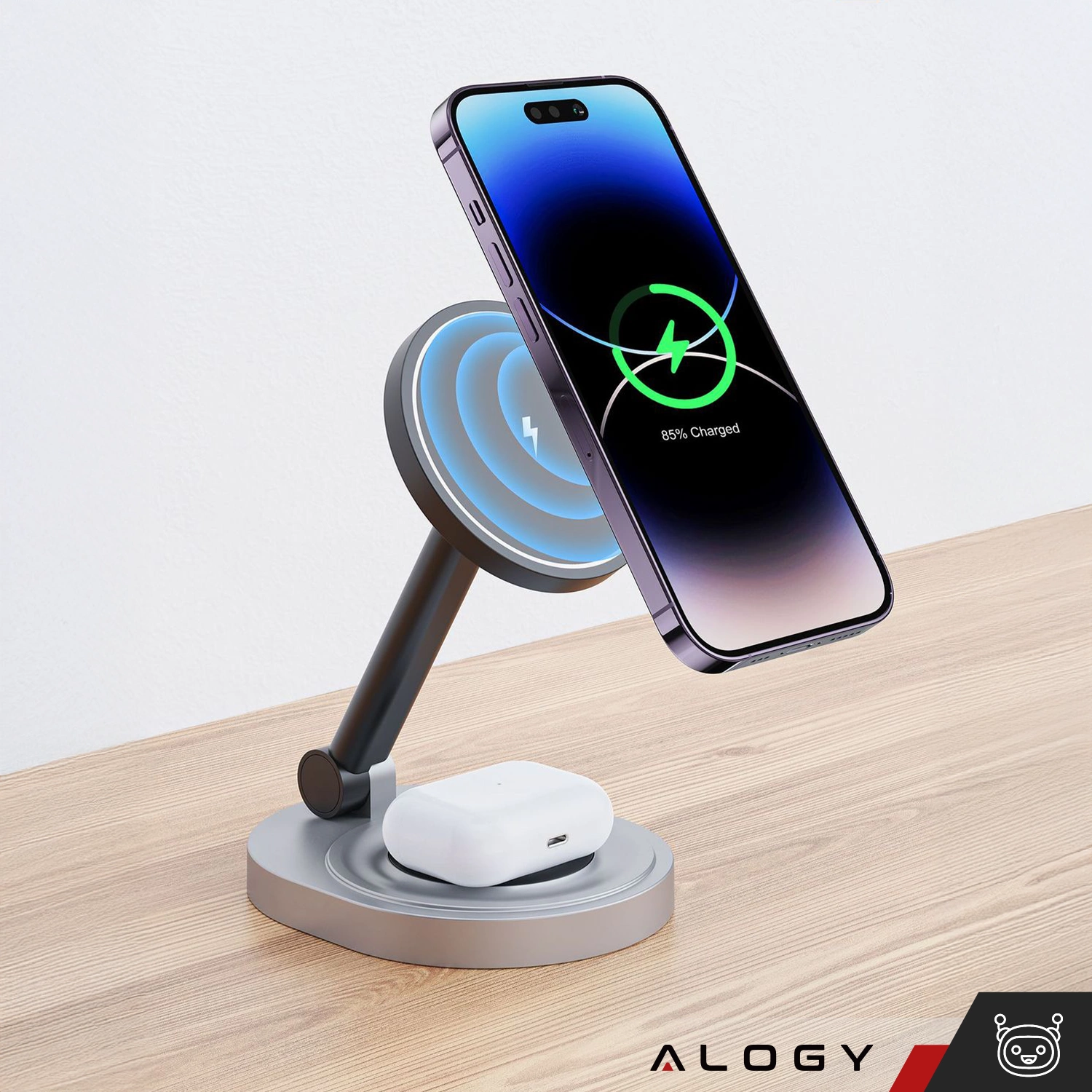 ✅ Bezprzewodowa stacja ładowania Alogy 2w1 to idealne rozwiązanie dla użytkowników Apple MagSafe oraz wszystkich smartfonów obsługujących technologię Qi. Umożliwia jednoczesne ładowanie iPhone’a i AirPods/Apple Watch, zapewniając szybkie i stabilne zasilanie.