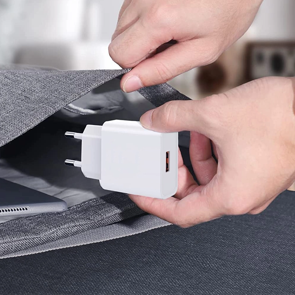 Ładowarka sieciowa USB-A charakteryzuje się minimalistyczną konstrukcją i lekką wagą.