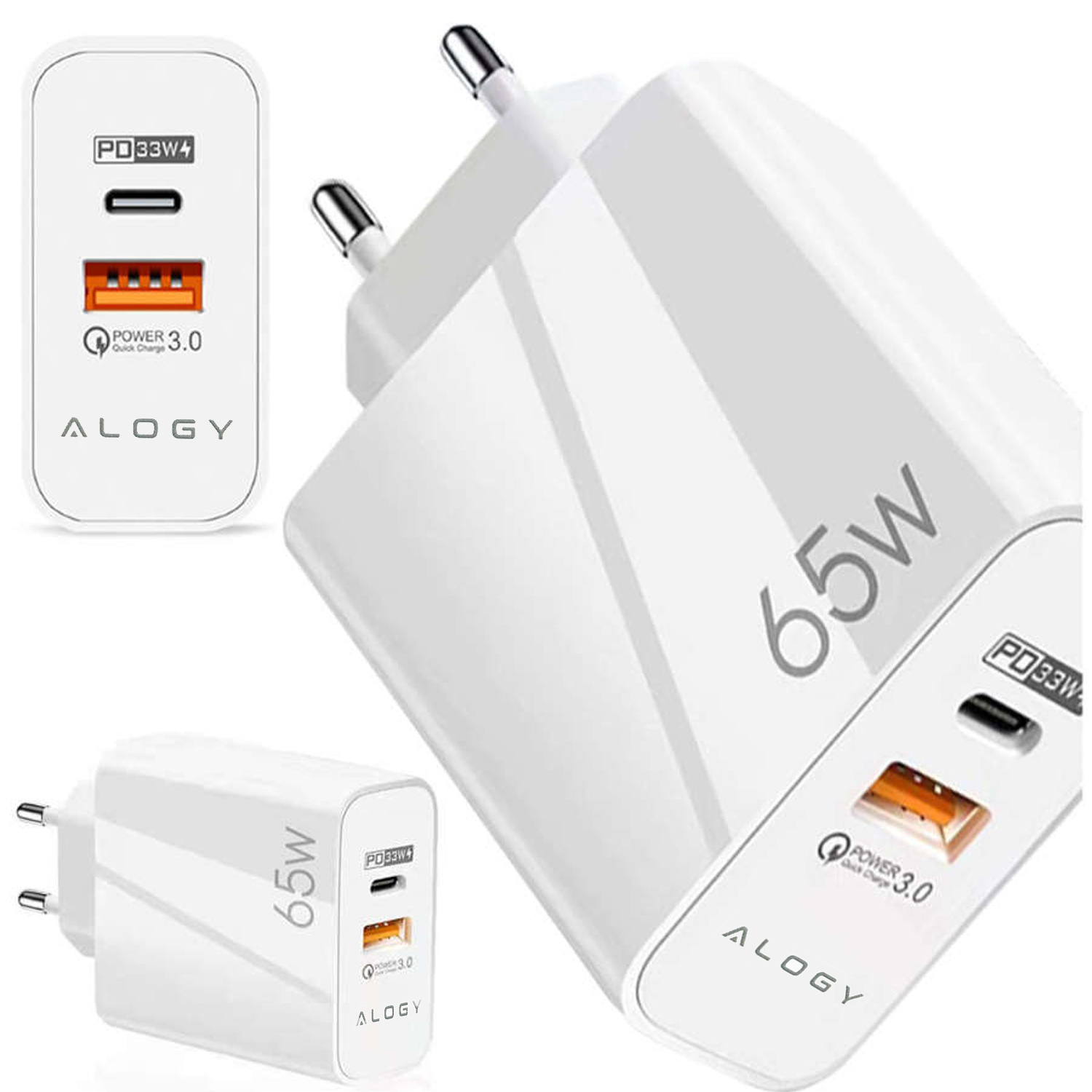 ▶️ Ładowarka Sieciowa Alogy GaN PowerCharge™ 65W USB-C PD USB-A QC Szybka