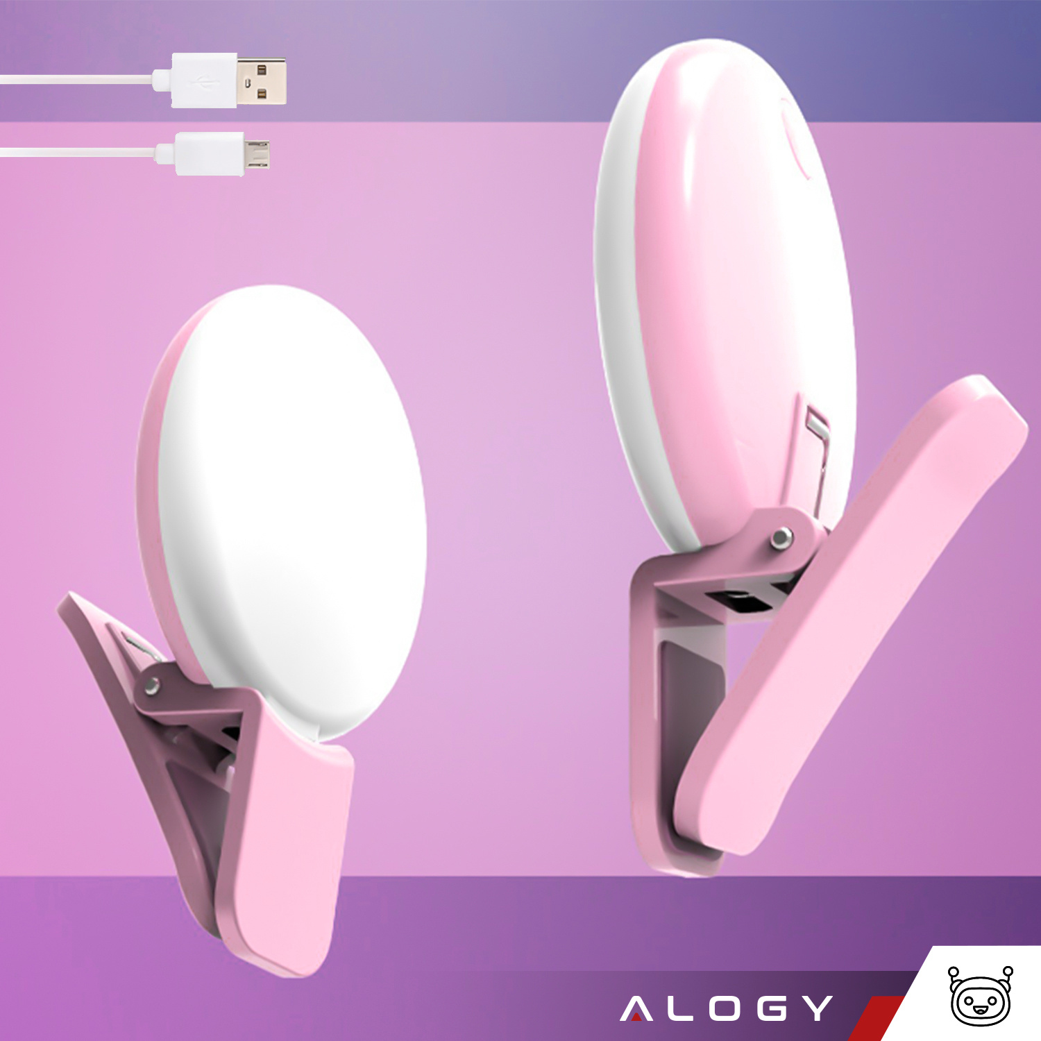 Opinie o Lampka LED Alogy Mini Selfie Ring Klips do nagrywania robienia zdjęć do telefonu z klipsem Różowa