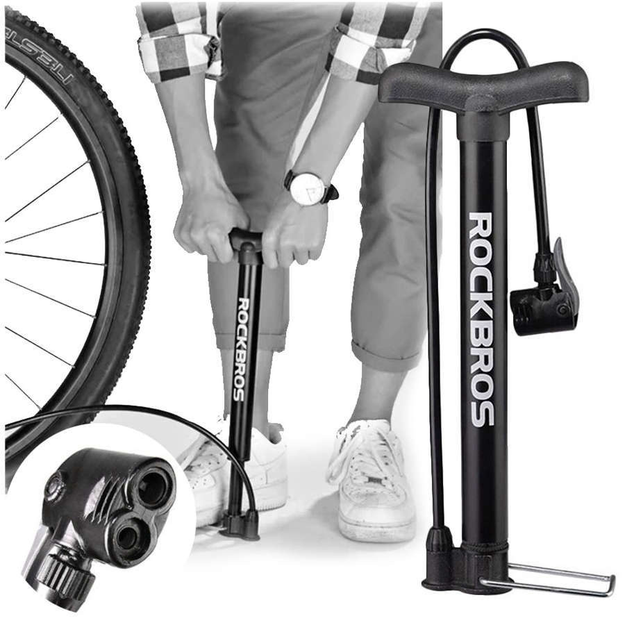 Opinie o Metalowa Pompka rowerowa podłogowa RockBros A320 z igłą do roweru piłki Czarna