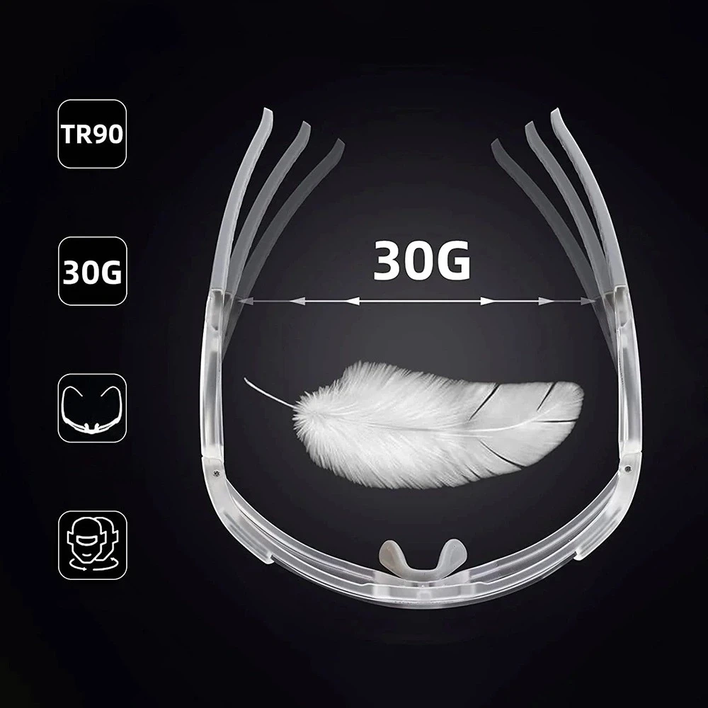Wyjątkowa lekkość zapewnia komfort noszenia. Dzięki masie zaledwie 30g, okulary niemal nie są odczuwalne na twarzy, co pozwala na długie godziny jazdy bez uczucia dyskomfortu.