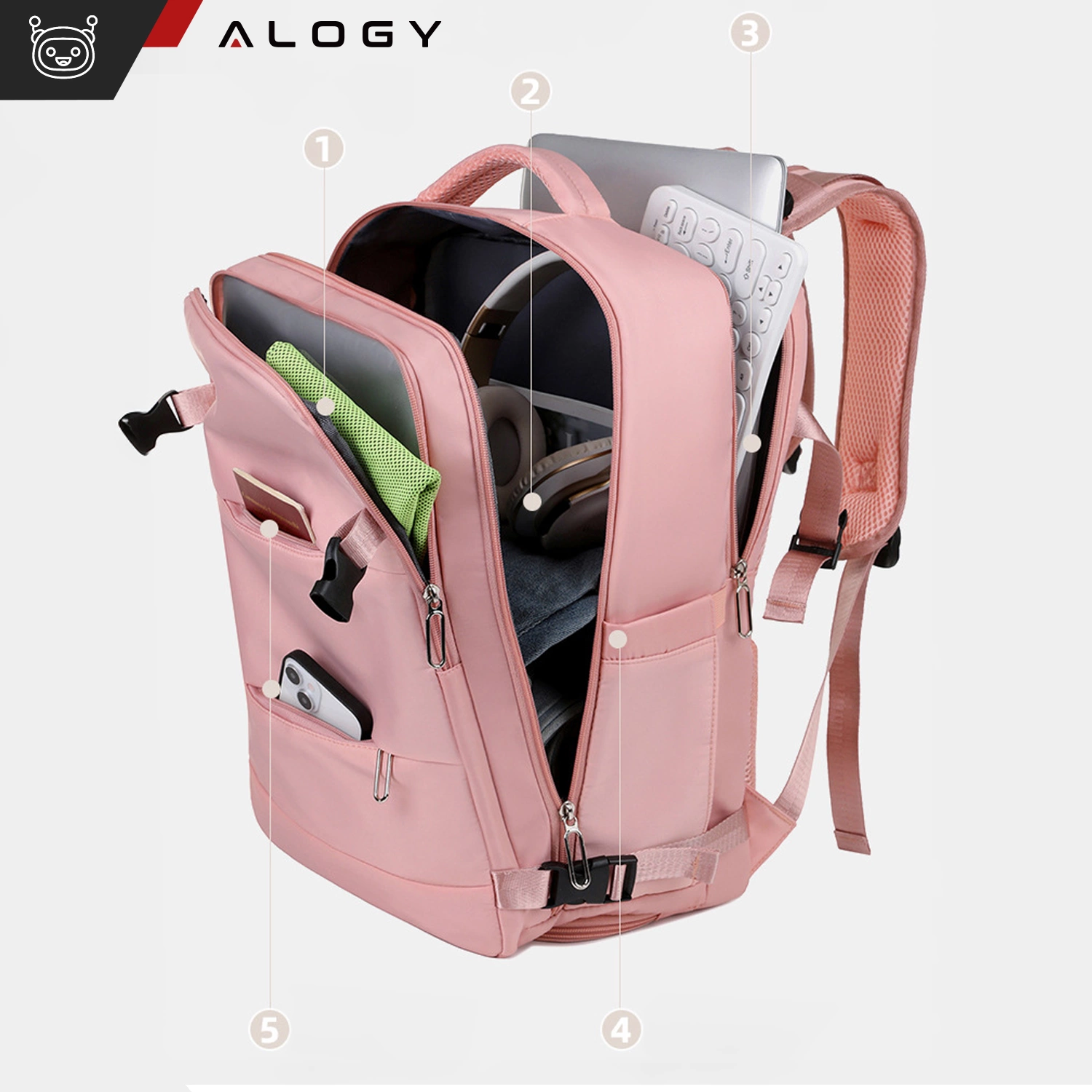 Opinie o Plecak podróżny do samolotu Bagaż do SAMOLOTU 45x30x20 Wizzair Rayanair pracy szkoły Alogy Różowy