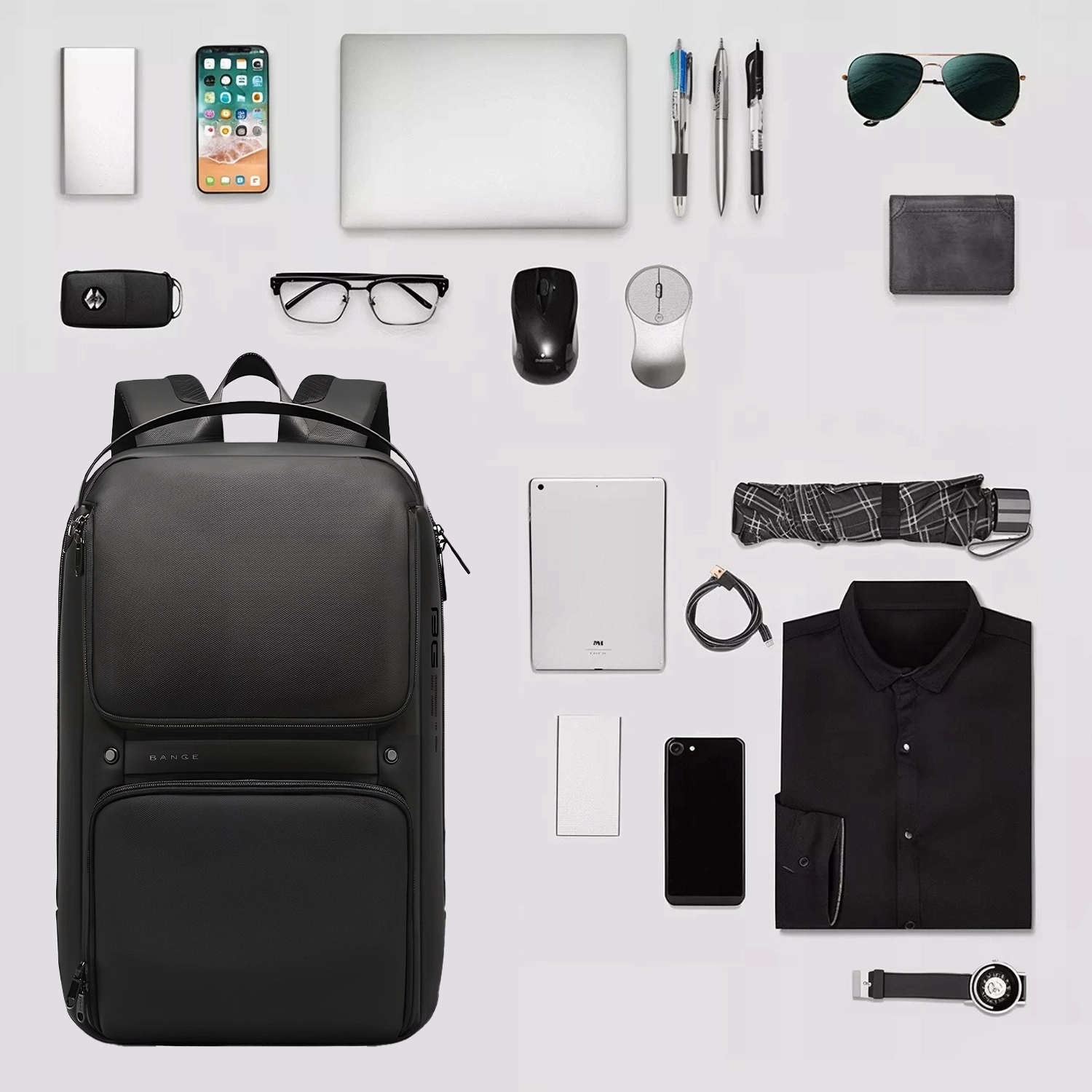 Opinie o Plecak wodoodporny Bange torba na laptopa 15.6" akcesoria podróżny 48x30x12.5 cm do pracy szkoły samolotu męski damski USB i USB-C Czarny