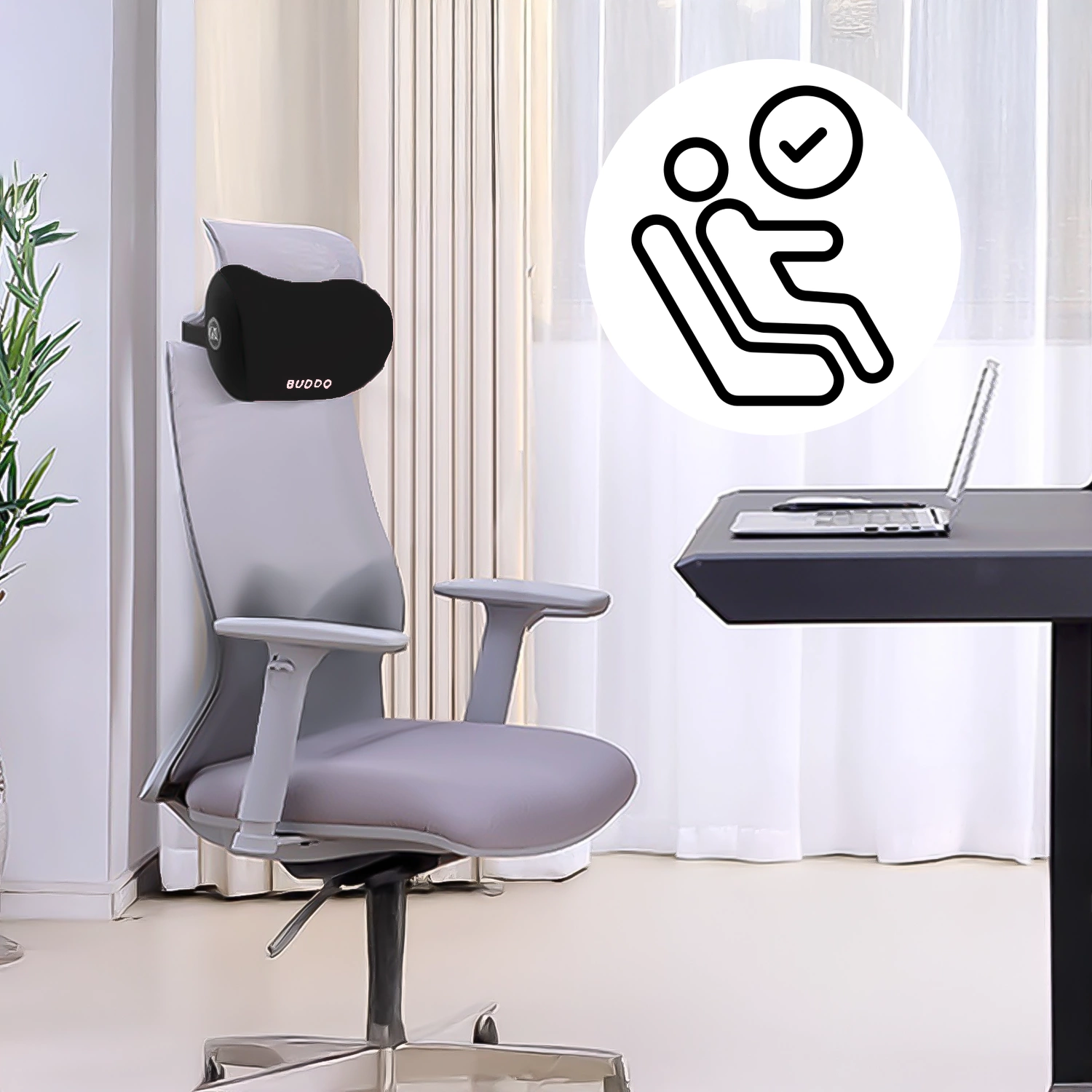 - Ergonomiczny kształt – Zapobiega zmęczeniu i napięciu mięśni szyi, wspierając odcinek szyjny kręgosłupa.