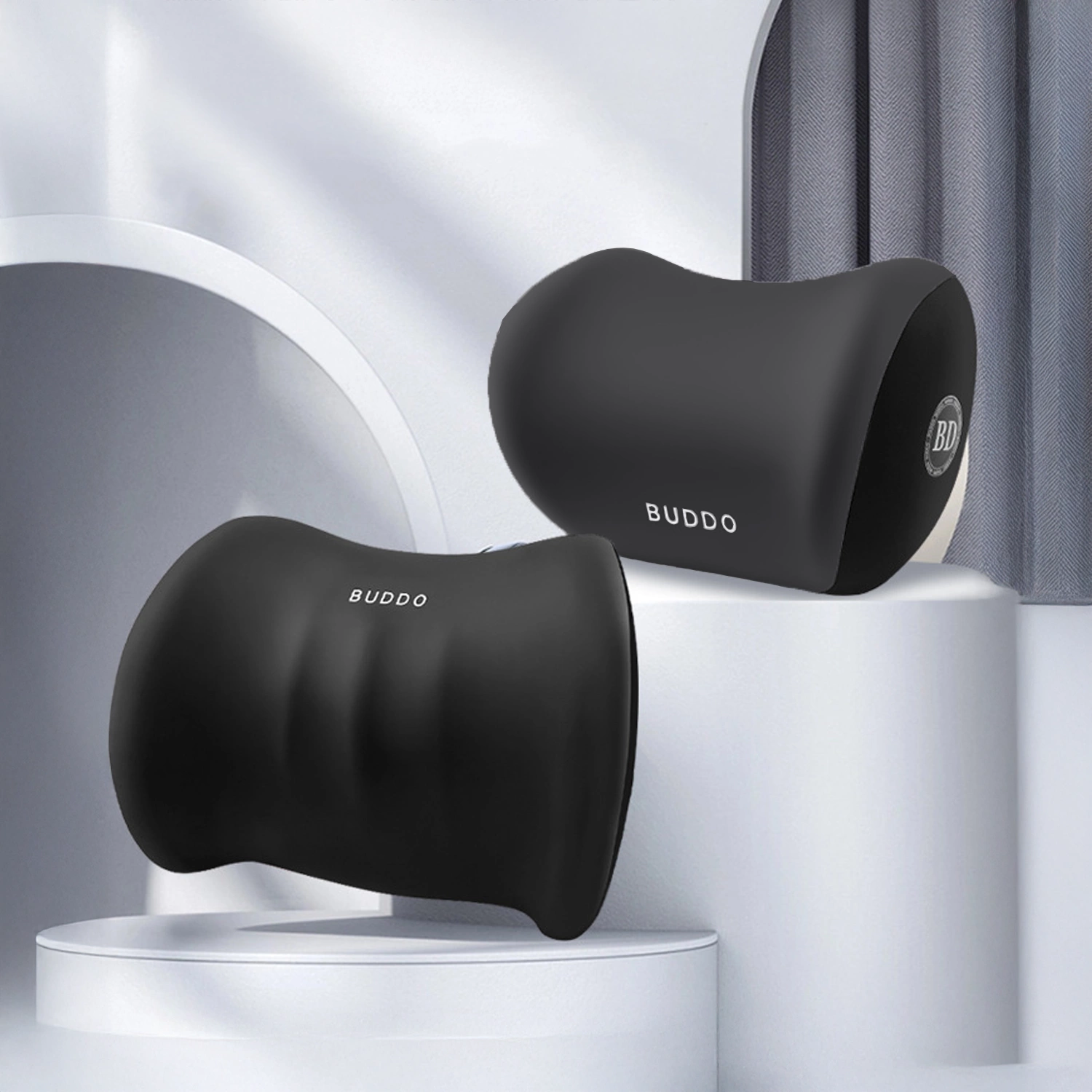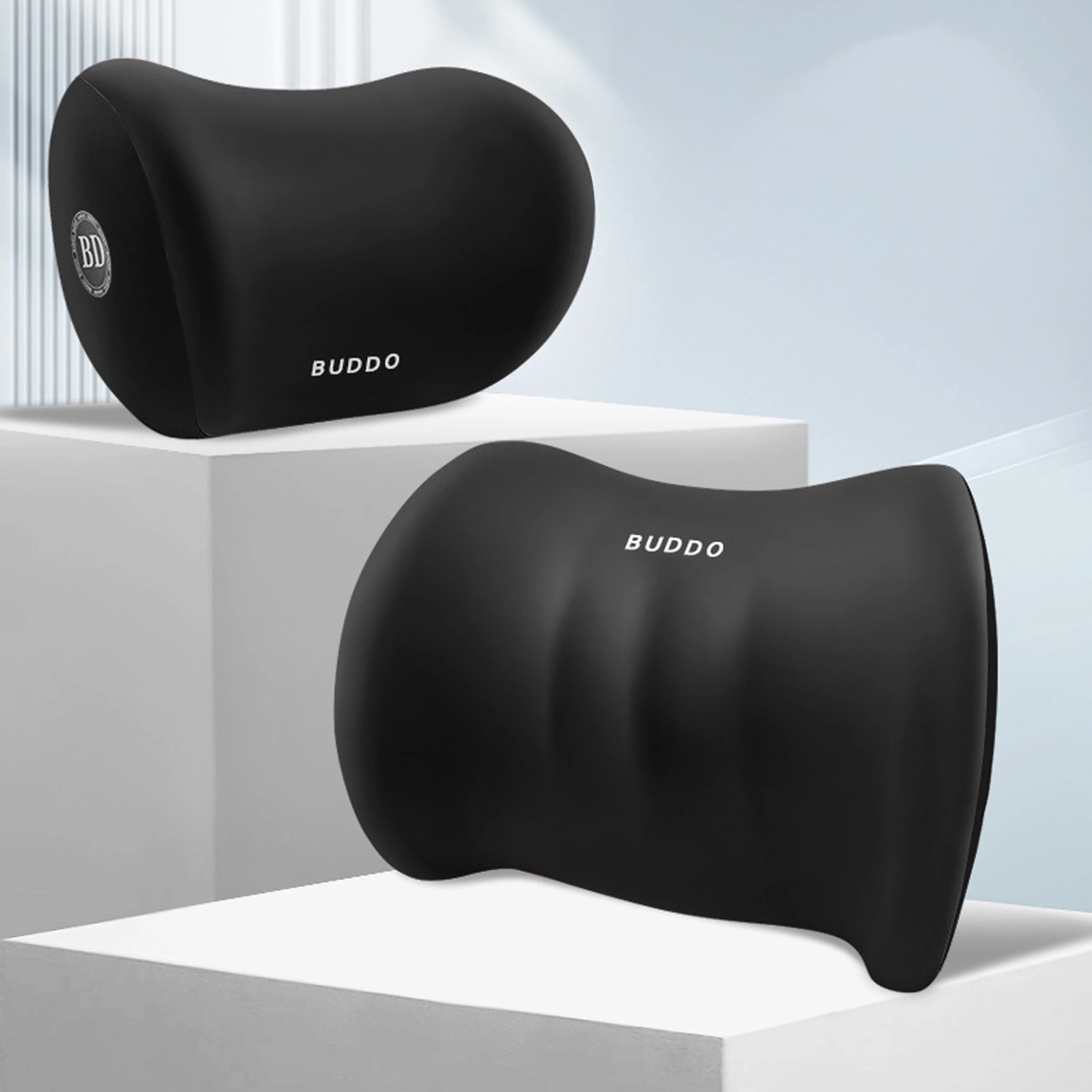 2x Poduszka samochodowa Car Pillow wspierająca plecy, lędźwia i szyję z pianką zapamiętująca Memory Foam Czarna