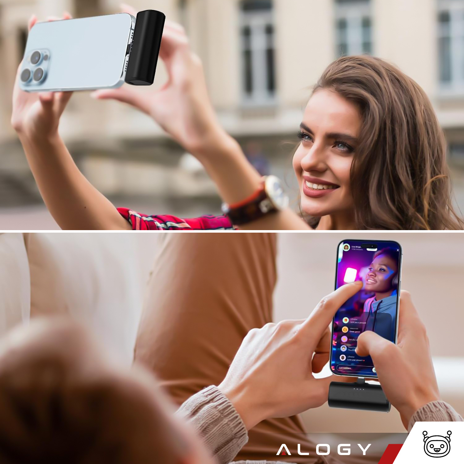 PowerBank 5000mAh Alogy bank energii kieszonkowy mały ładowarka zewnętrzna Power Bank USB-C i lightning Czarny