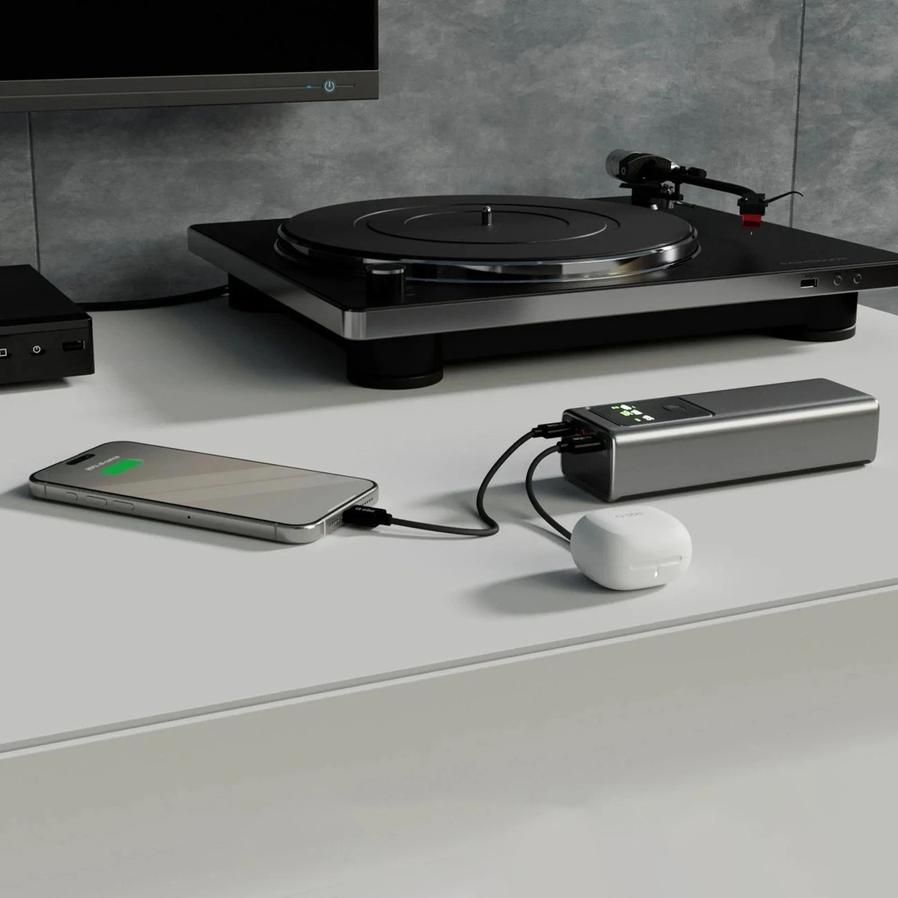 Dzięki technologii Power Delivery 100W naładujesz laptopa tak szybko, jak z gniazdka sieciowego. Dwa porty USB-C z funkcją wejścia i wyjścia oraz jeden port USB-A out umożliwiają ładowanie wielu urządzeń jednocześnie – bez kompromisów.