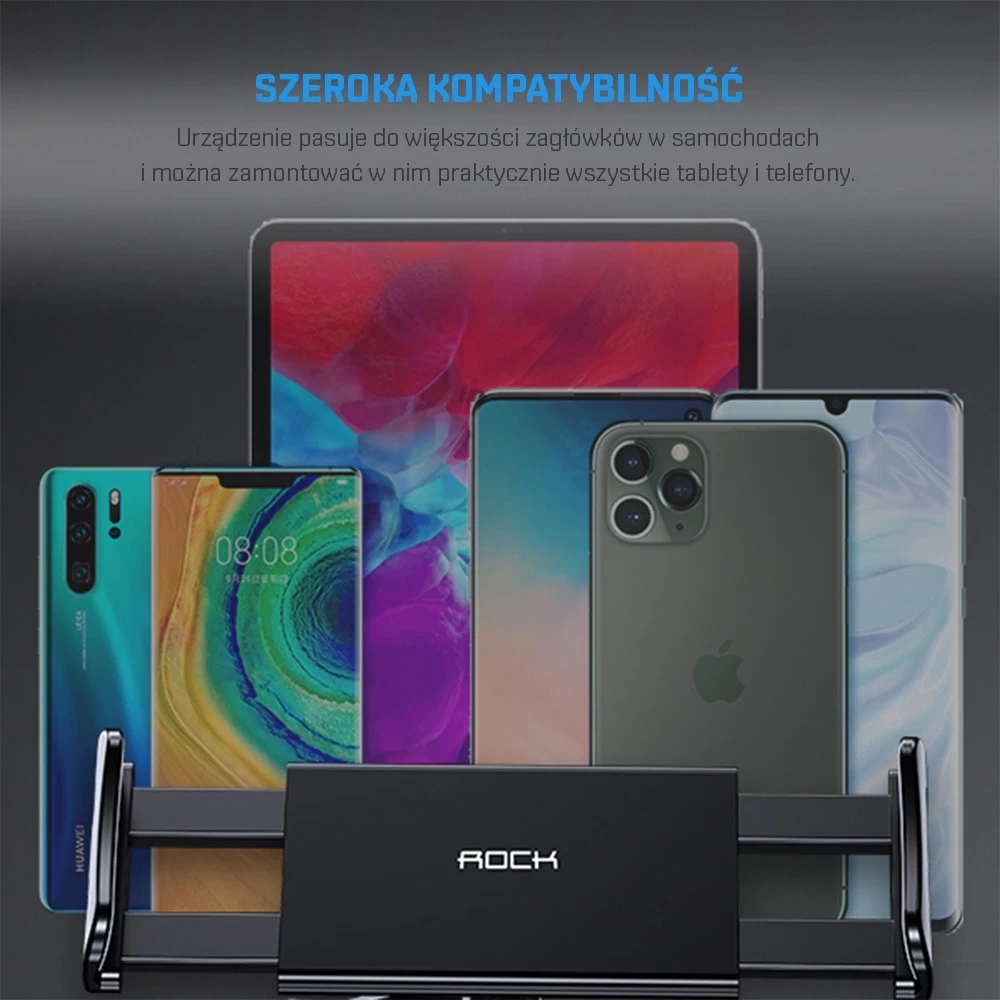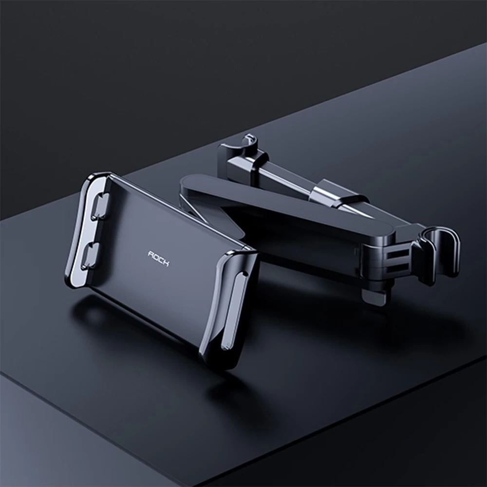 Uniwersalny uchwyt samochodowy na zagłówek firmy ROCK pasuje do większości modeli telefonów oraz tabletów o przekątnej 4,5" - 11. Uchwyt montowany jest do zagłówka przy pomocy specjalnych siłowników. Posiada on regulowane ramię o zakresach ruchu od 9-26cm oraz głowice 360 stopni, co przekłada się na wygodę użytkowania. Jest to idealne rozwiązanie dla dzieci, które lubią oglądać bajki podczas jazdy.