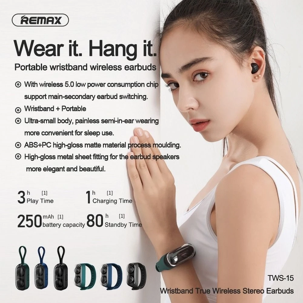 Poznaj bezprzewodowe słuchawki Bluetooth REMAX TWS-15 — idealne połączenie wygody, nowoczesnego designu i doskonałej jakości dźwięku. W zestawie znajduje się unikalna stacja dokująca w formie smartbandu, która umożliwia wygodne przenoszenie słuchawek i ich szybkie ładowanie w każdej sytuacji.