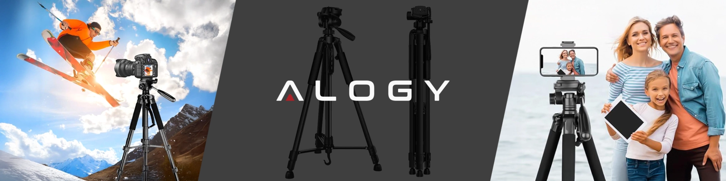 ✅ Uniwersalny uchwyt – kompatybilność z telefonami, aparatami, kamerami GoPro i mini kamerami sprawia, że statyw Alogy jest niezwykle wszechstronny.
