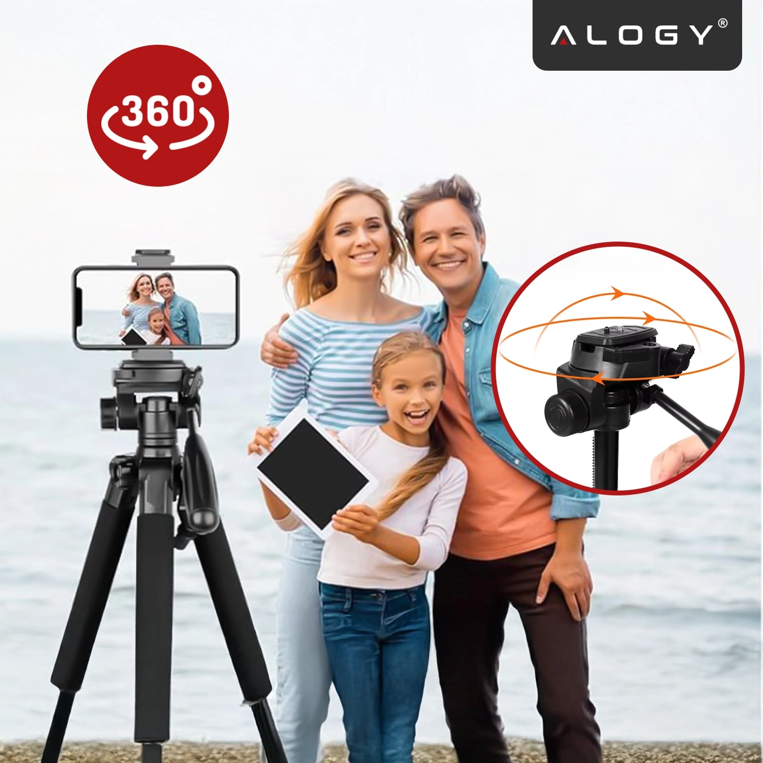 ✅ Obrotowa głowica 360° – pozwala ustawić telefon lub aparat pod dowolnym kątem bez przesuwania całego statywu, zapewniając komfort i profesjonalne ujęcia.
