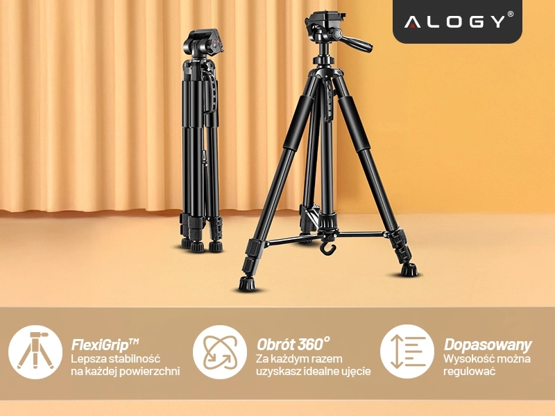 ⭐ Najnowszy model ⭐ Kompatybilność z telefonami, aparatami i kamerami ⭐FlexiGrip™ – stabilność na każdej powierzchni⭐ SmartLock™ – szybka i bezpieczna regulacja nóg ⭐ Obrotowa głowica 360° ⭐ LevelPro™ wbudowana poziomica ⭐ Lekka konstrukcja 930 g ⭐ Maksymalne obciążenie 3 kg ⭐ Regulowana wysokość 59–170 cm ⭐10 lat doświadczenia w branży ⭐ ponad 50.000 zadowolonych klientów marki Alogy ⭐