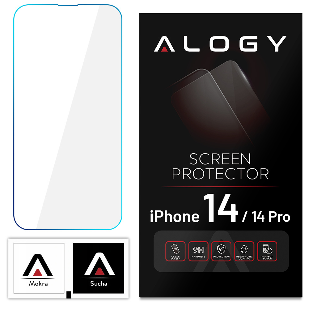 • Szkło hartowane 9H Alogy ochrona na ekran do Apple iPhone 14/ 14 Pro zapewnia doskonałą ochronę, wzmacnia i zabezpiecza wyświetlacz. Zostało wykonane ze specjalnie przetworzonego, dodatkowo wzmocnionego Szkła Hartowanego 9H.