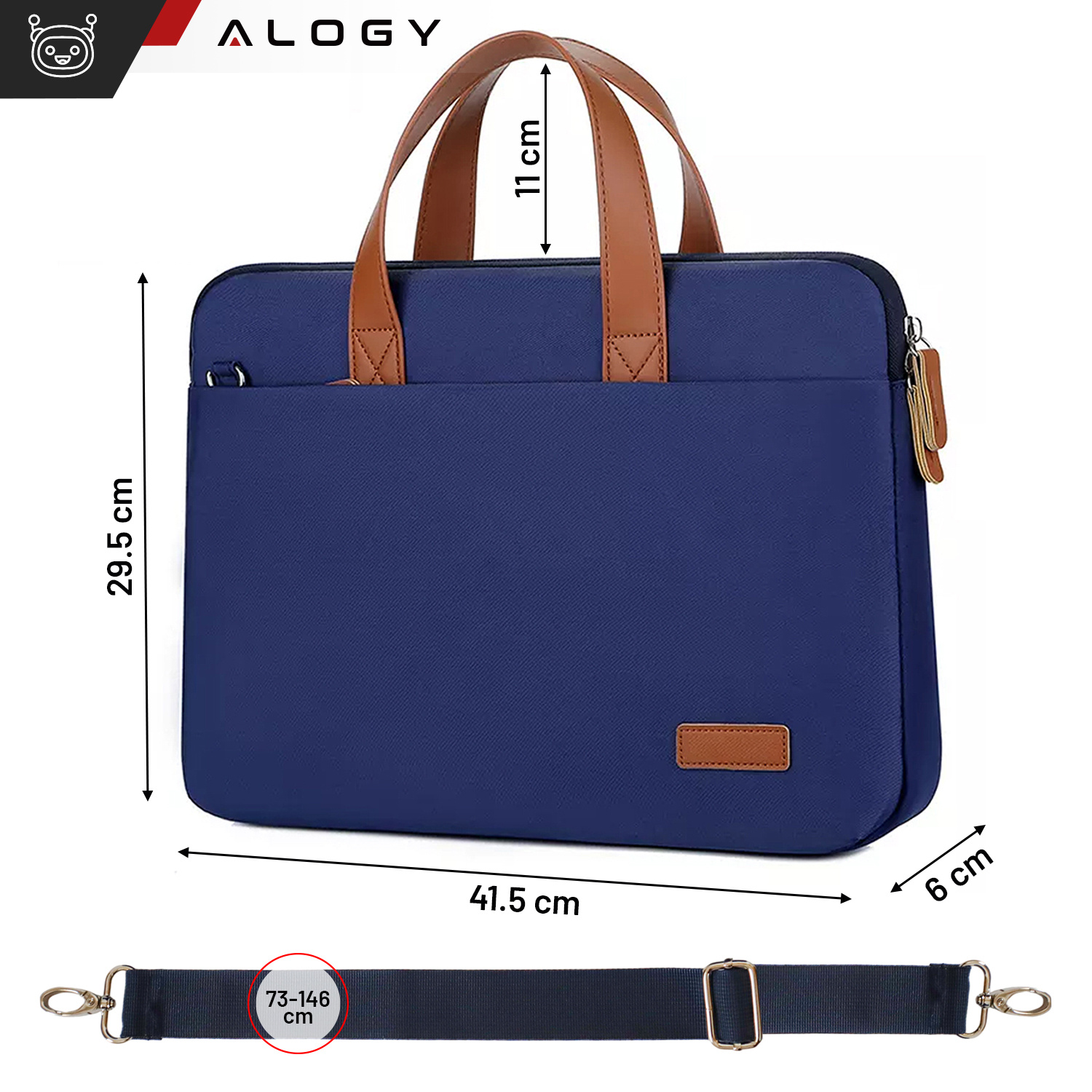 Opinie o Torba teczka na ramię męska damska na laptopa tablet 15.6 cal materiałowa podróżna pokrowiec Alogy Granatowa