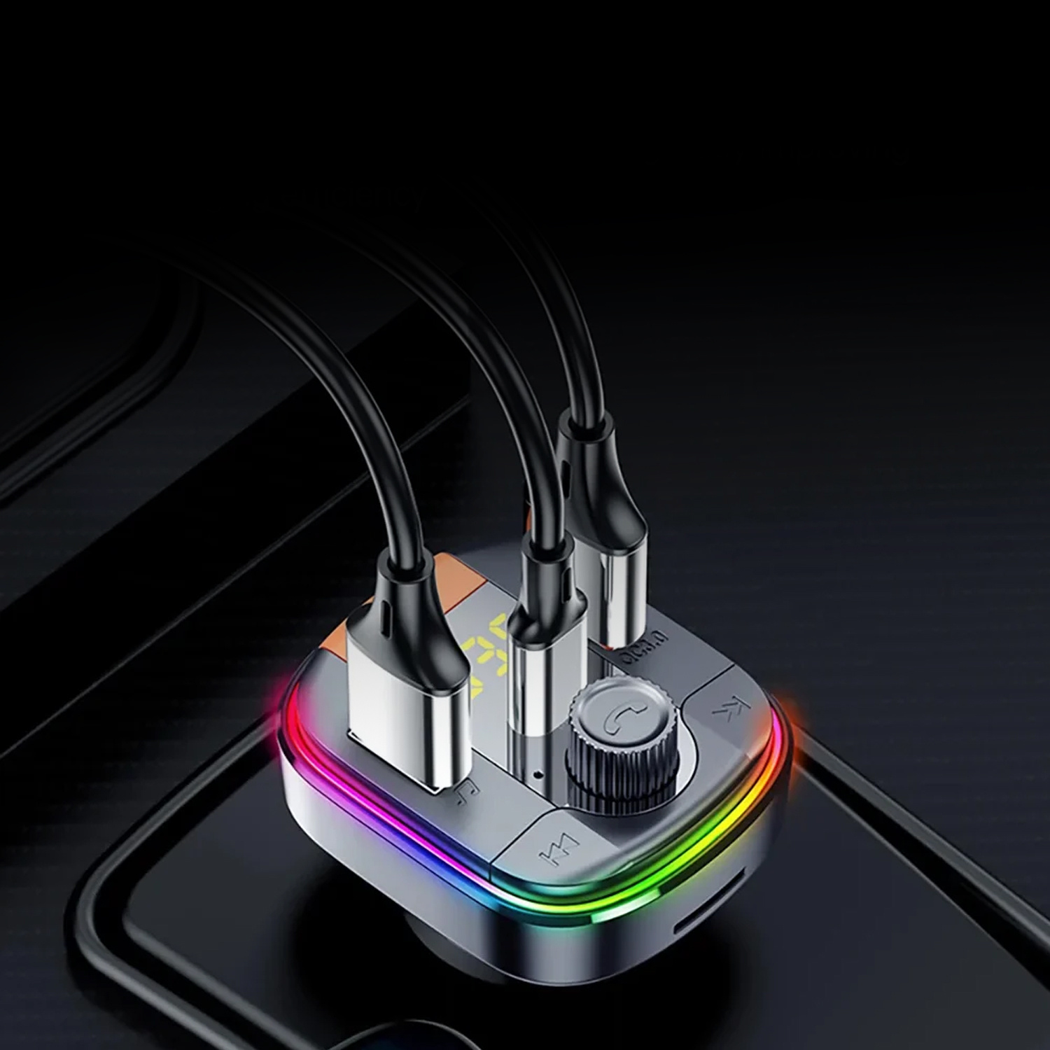 Transmiter samochodowy LED RGB BT z Ładowarką do samochodu (2x USB, 1x USB-C)