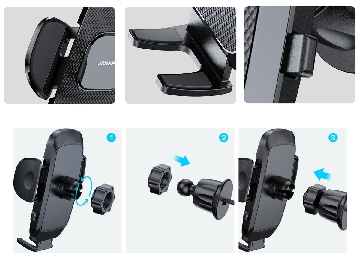 Uchwyt samochodowy marki Joyroom został wykonany z najwyższej jakość materiałów, dzięki czemu jego konstrukcja jest stabilna, a chwyt pewny. Antypoślizgowe wykończenie zapewnia jeszcze bardziej skuteczną ochronę przed wyślizgnięcie się telefonu. Uchwyt posiada regulowane ramiona, które dopasują się do rozmiarów telefonu.