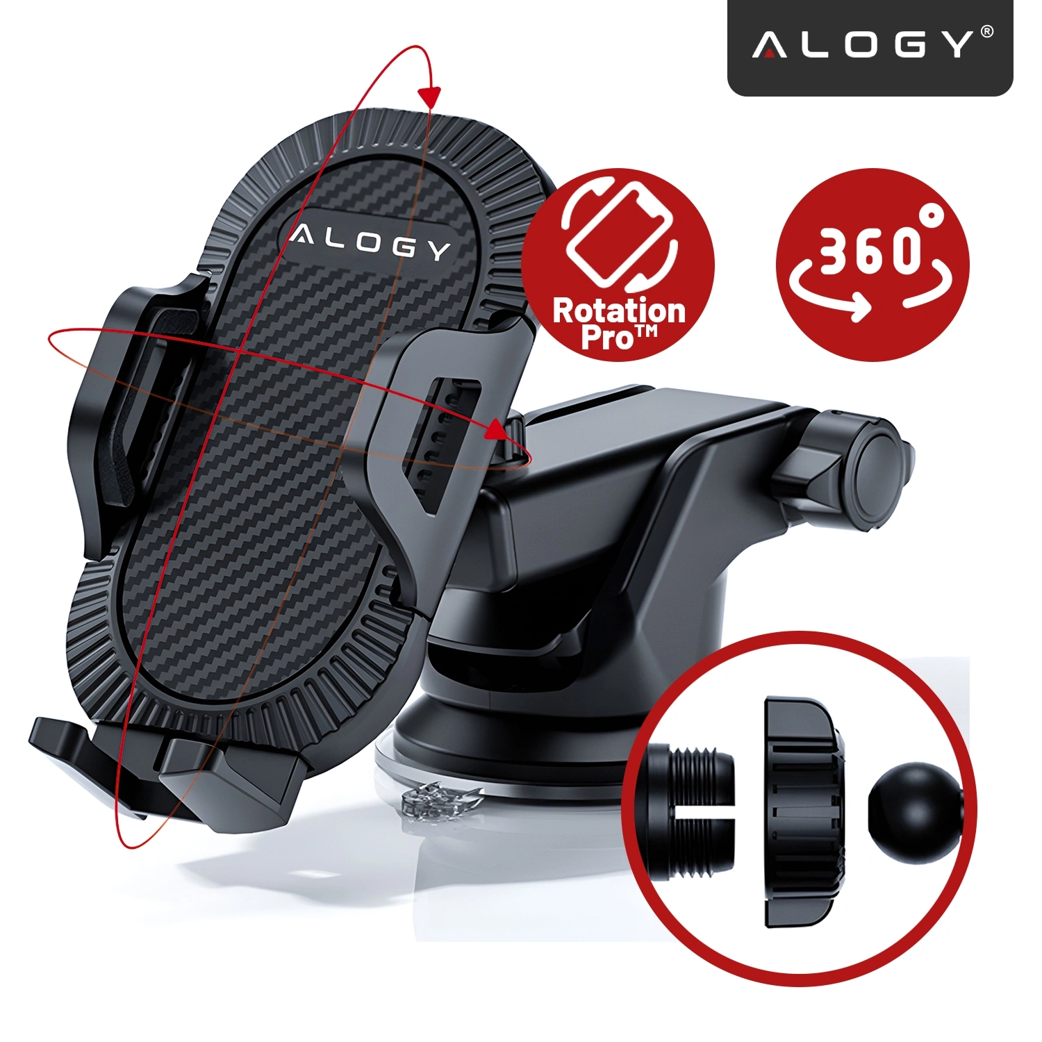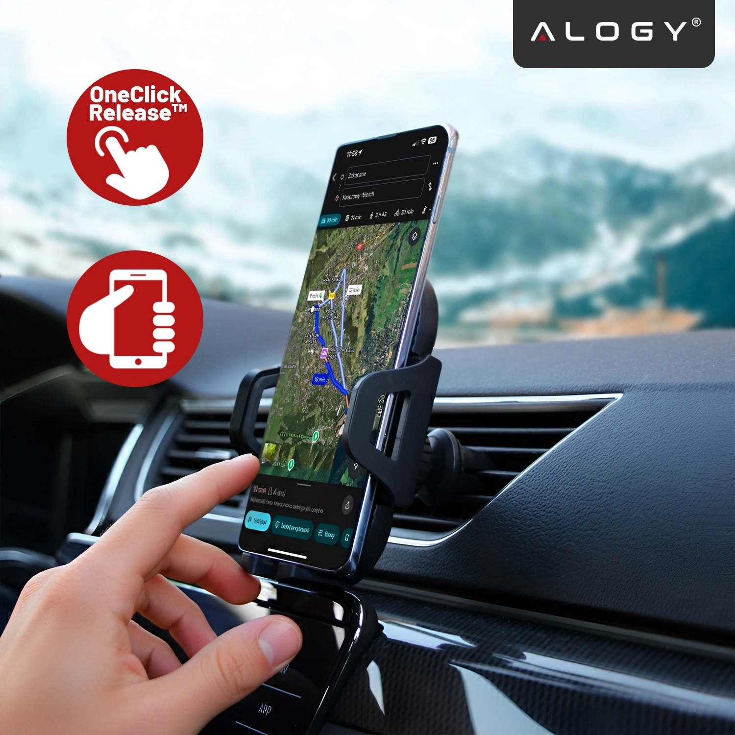 ⭐ Najnowszy model ⭐ Certyfikat CE ⭐ Kompatybilność z telefonami 4.7–7.5” ⭐ 3 sposoby montażu – kratka, szyba, kokpit ⭐ VacuumSeal™ - Solidna przyssawka ⭐ Obsługa jedną ręką ⭐ Regulacja ramienia 240° ⭐ Obrotowa głowica 360° ⭐ FlexiGrip Lock™ system antywibracyjny ⭐10 lat doświadczenia w branży ⭐ ponad 50.000 zadowolonych klientów marki Alogy ⭐
