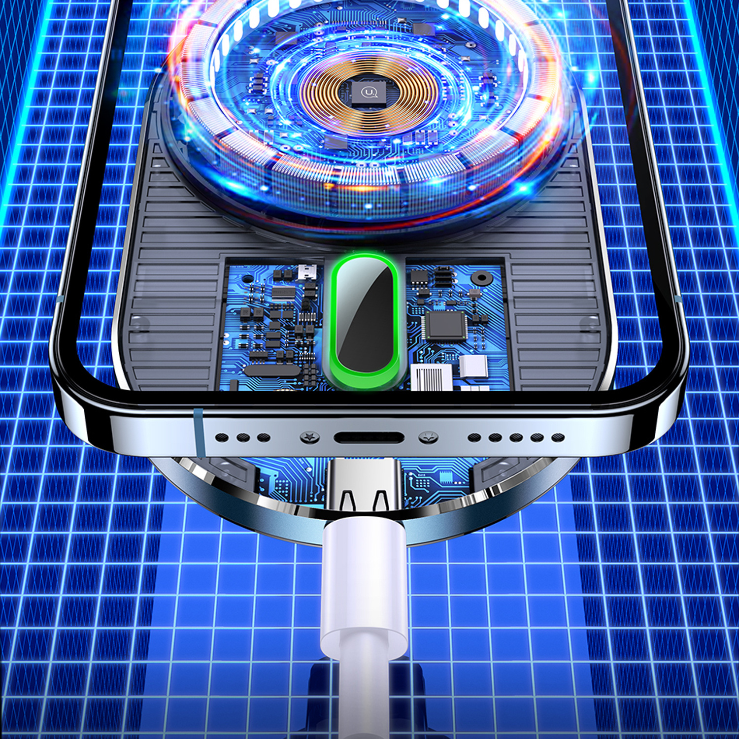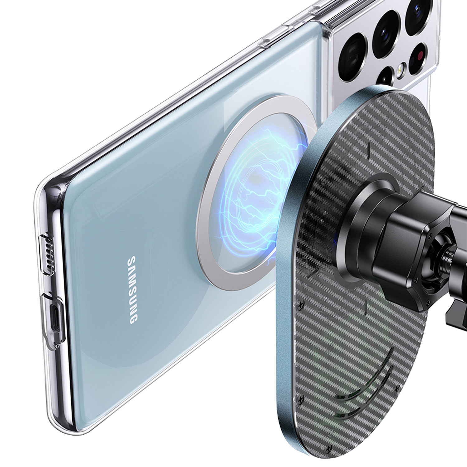 Wbudowane magnesy w ładowarce doskonale utrzymują smartfona w odpowiednim miejscu zapewniając szybkie i bezpieczne ładowanie.