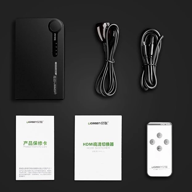 Switch wyposażono w w 3 porty wejściowe i jeden wyjściowy. Górny przycisk służy do łatwego przełączenia się pomiędzy gniazdami. Kiedy aktywne jest tylko jedno złącze to przełącznik automatycznie się na nie przestawi. Źródło sygnału oznaczone jest diodą zlokalizowaną przy guziku. Po uruchomieniu lub podłączeniu źródła obrazu, rozdzielacz automatycznie się na nie przełączy. Po wyłączeniu czy odłączeniu, przełączy się od razu na kolejne źródło, które będzie aktywne.