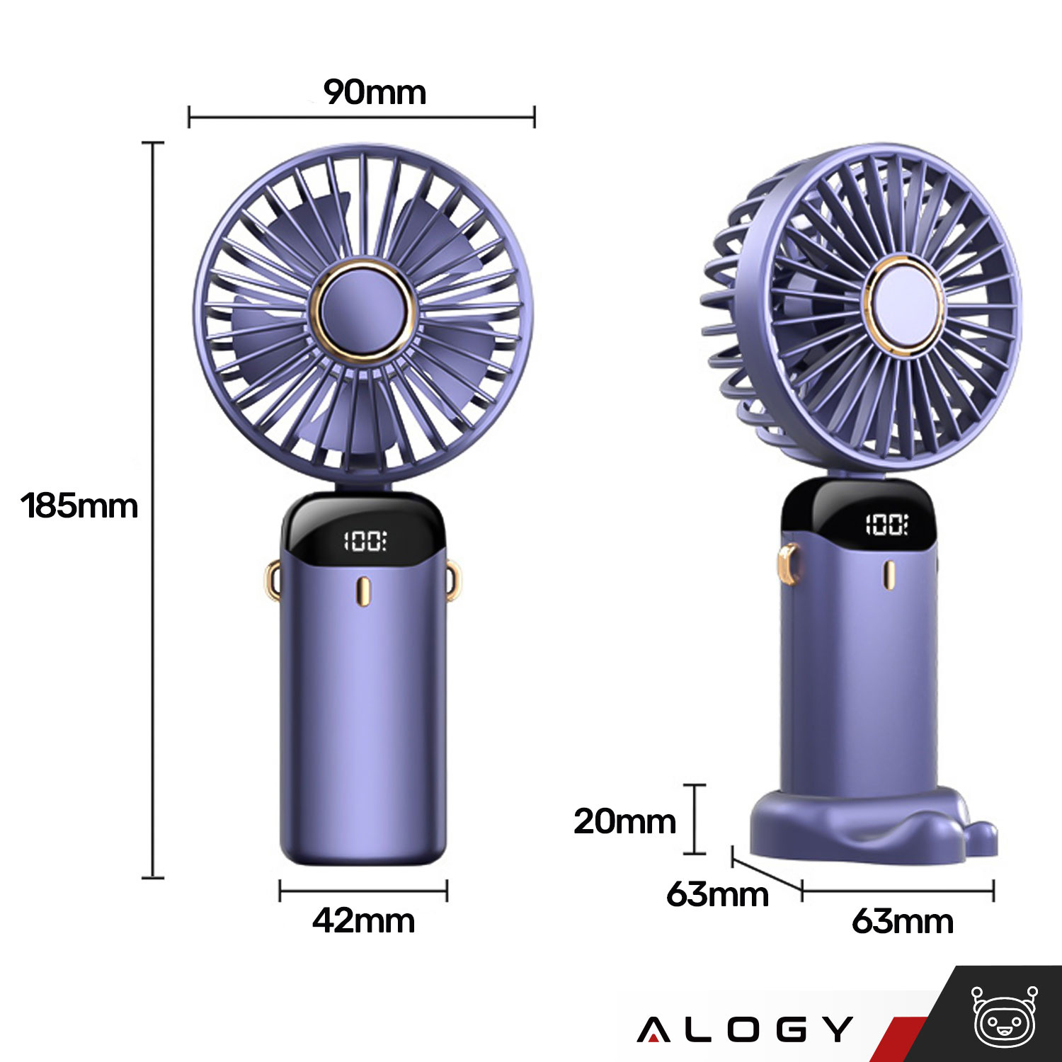 Opinie o Wentylator wiatrak wiatraczek ręczny bezprzewodowy Alogy biurkowy przenośny do ręki z uchwytem na telefon USB-C granatowy