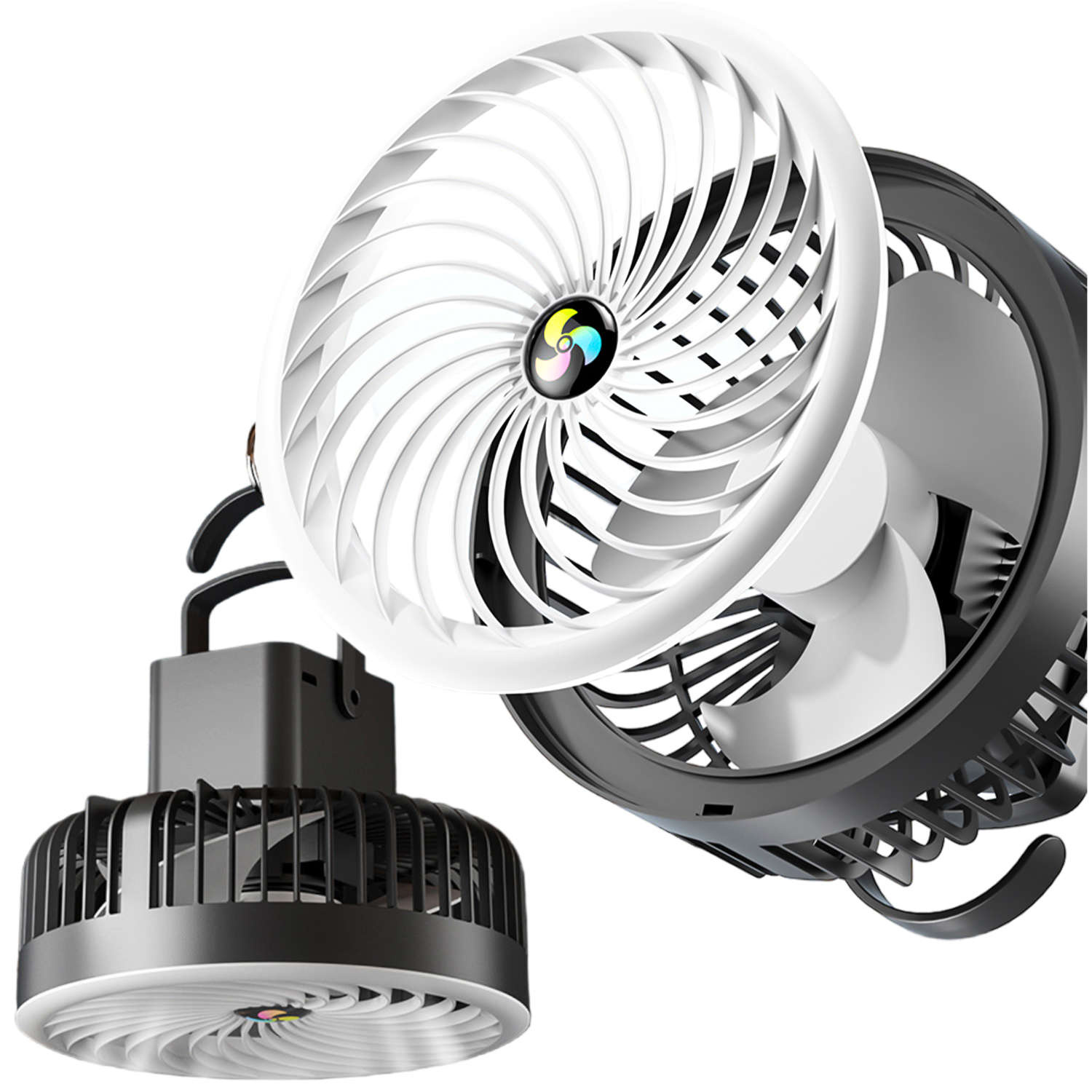 Opinie o Wiatrak wentylator biurkowy z lampką LED 2w1 Alogy przenośny wiszący stojący Bezprzewodowy Hanging Outdoor Mini Fan uchwyt na haczyk Czarny