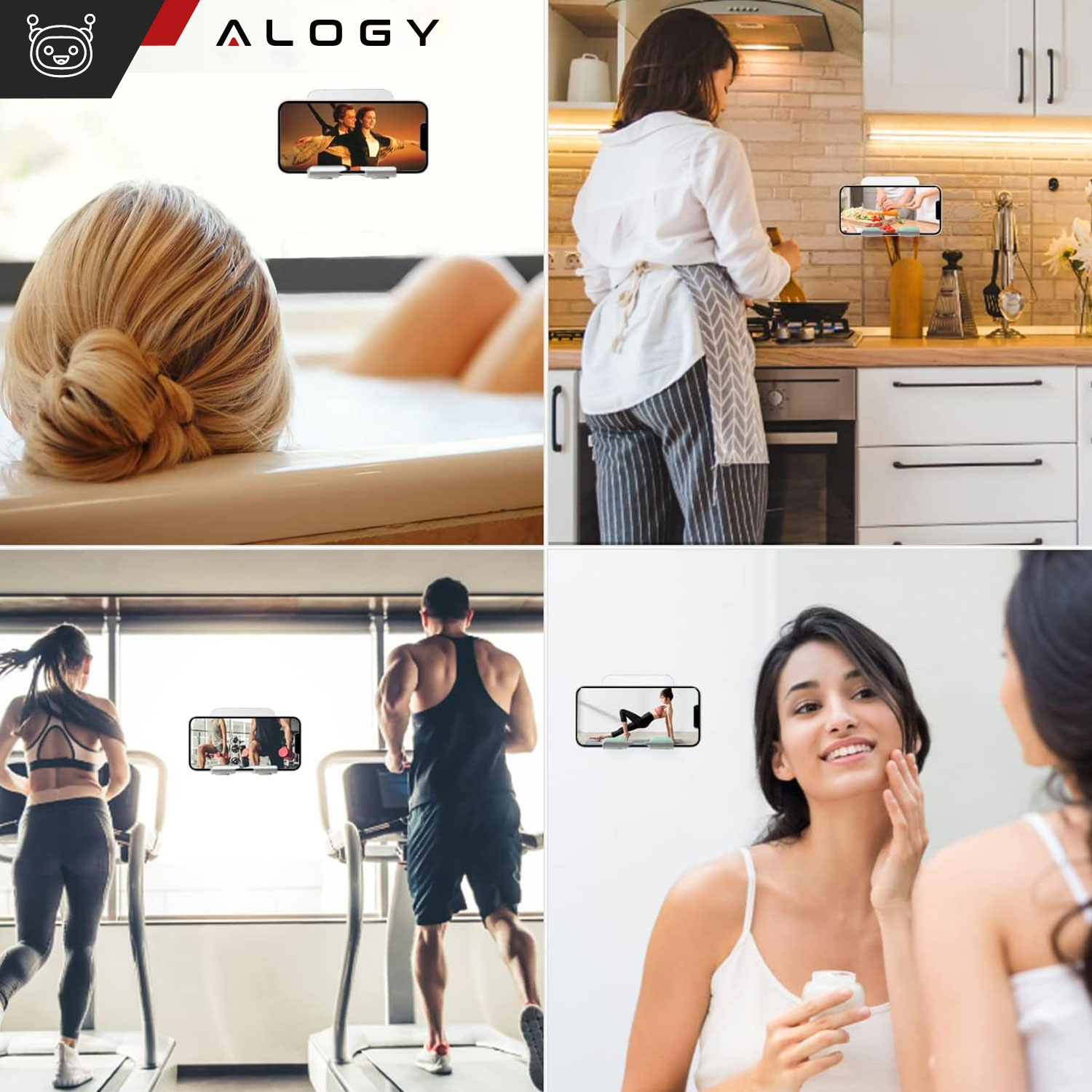Držiak sa montuje pomocou silikónu pokrytého silným lepidlom, čo umožňuje inštaláciu na rôzne povrchy, ako sú hladké steny, dlaždice, sklo, drevo alebo kov. Vďaka tomuto montážnemu systému je možné držiak jednoducho namontovať takmer kdekoľvek bez potreby vŕtania alebo použitia náradia,