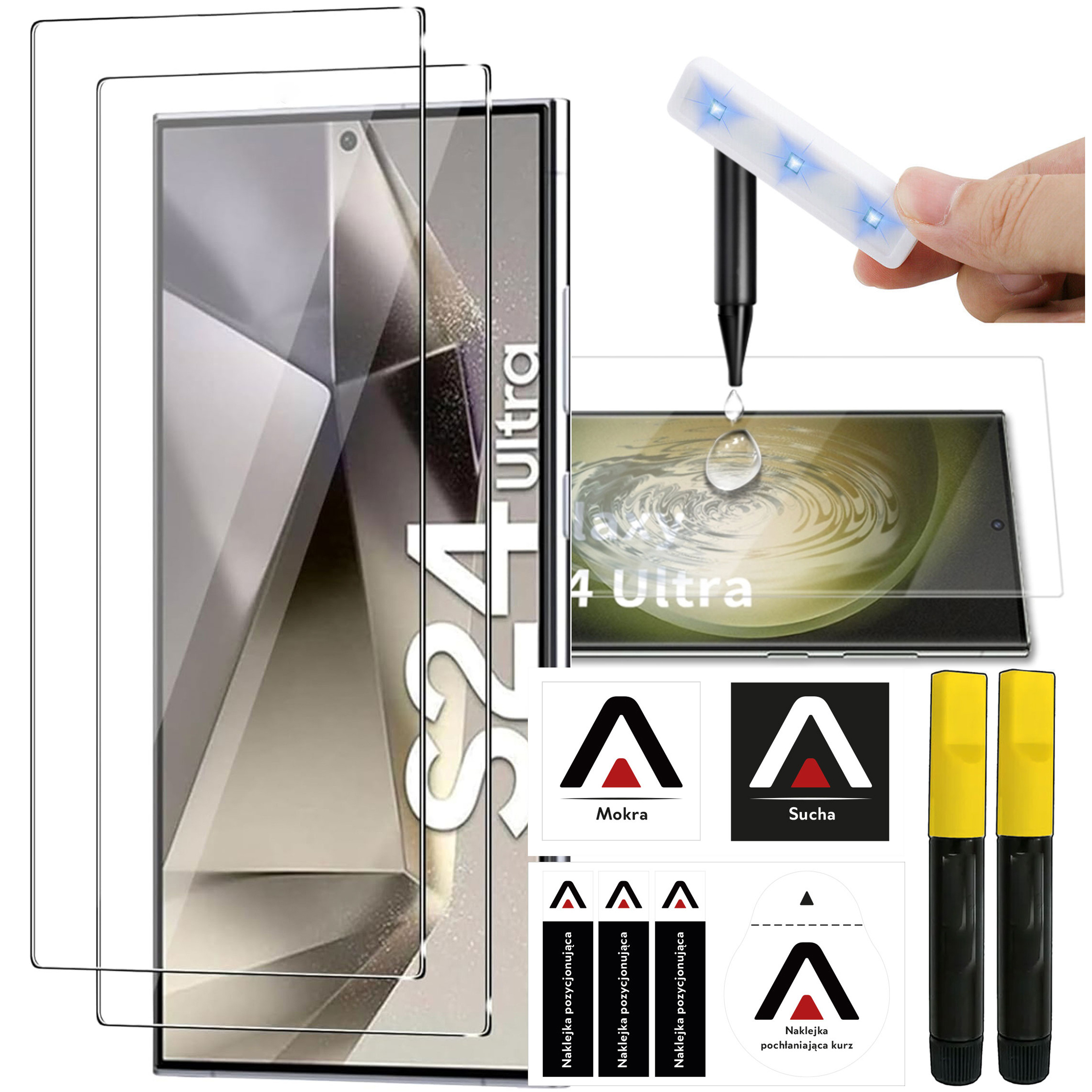 2x Tvrdené sklo s UV lepiacou lampou pre Samsung Galaxy S24 Ultra
