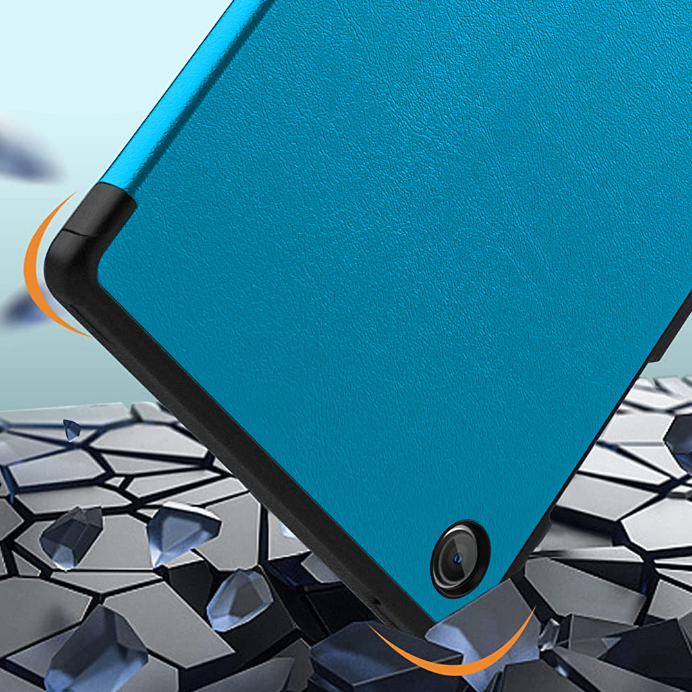 Puzdro je potiahnuté na dotyk príjemnou ekologickou kožou, ktorá dodáva elegantný a štýlový dizajn. Zadná časť krytu je navyše vystužená čiernym rámom, vyrobeným z pevného a odolného polykarbonátu, ktorý v prípade pádu absorbuje silu nárazu. Vnútorná časť krytu je pokrytá jemným materiálom, ktorý zvyšuje bezpečnosť a udržuje obrazovku čistú.