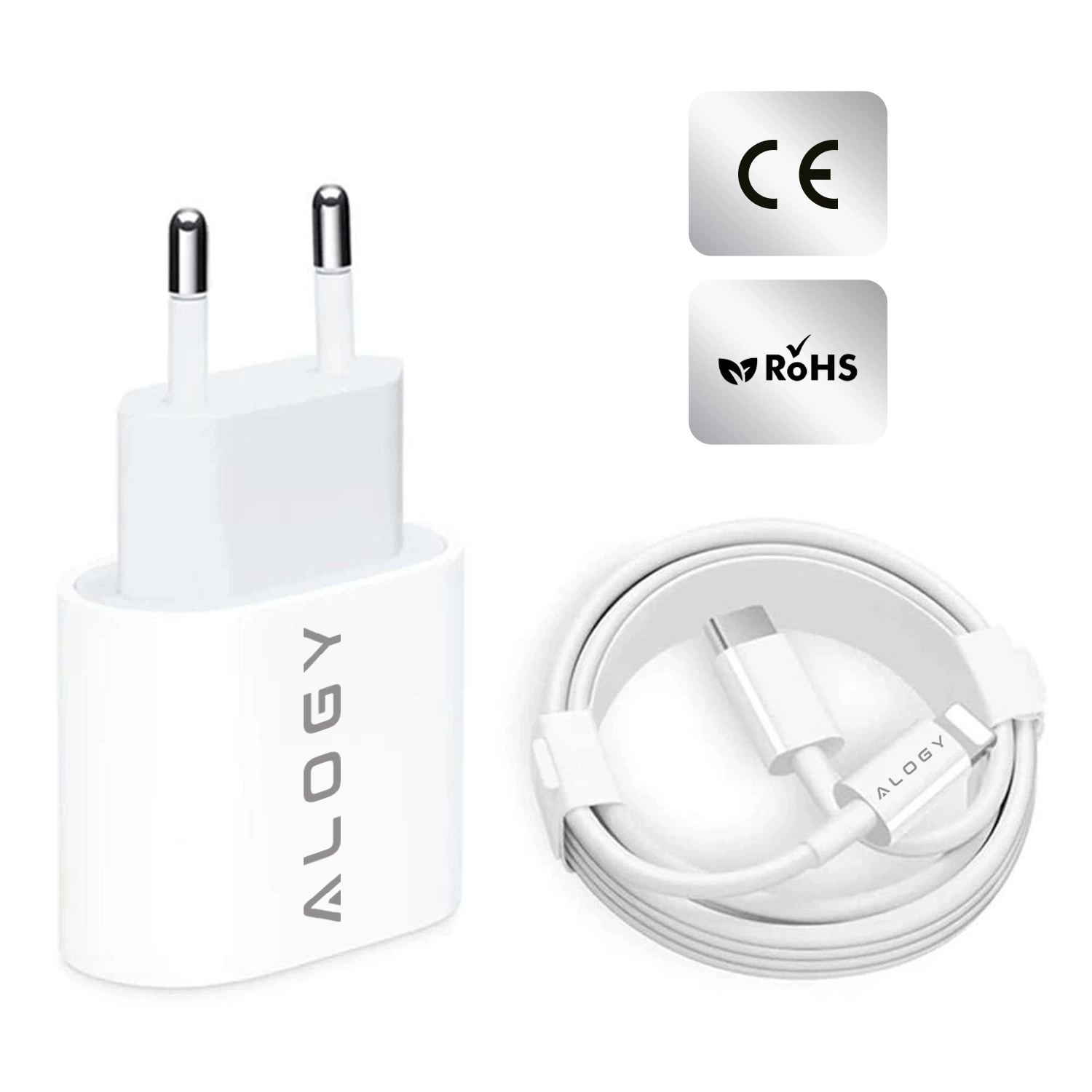 Alogy Nástenná nabíjačka Rýchla USB-C PD 20W Lightning kábel 1m biele puzdro