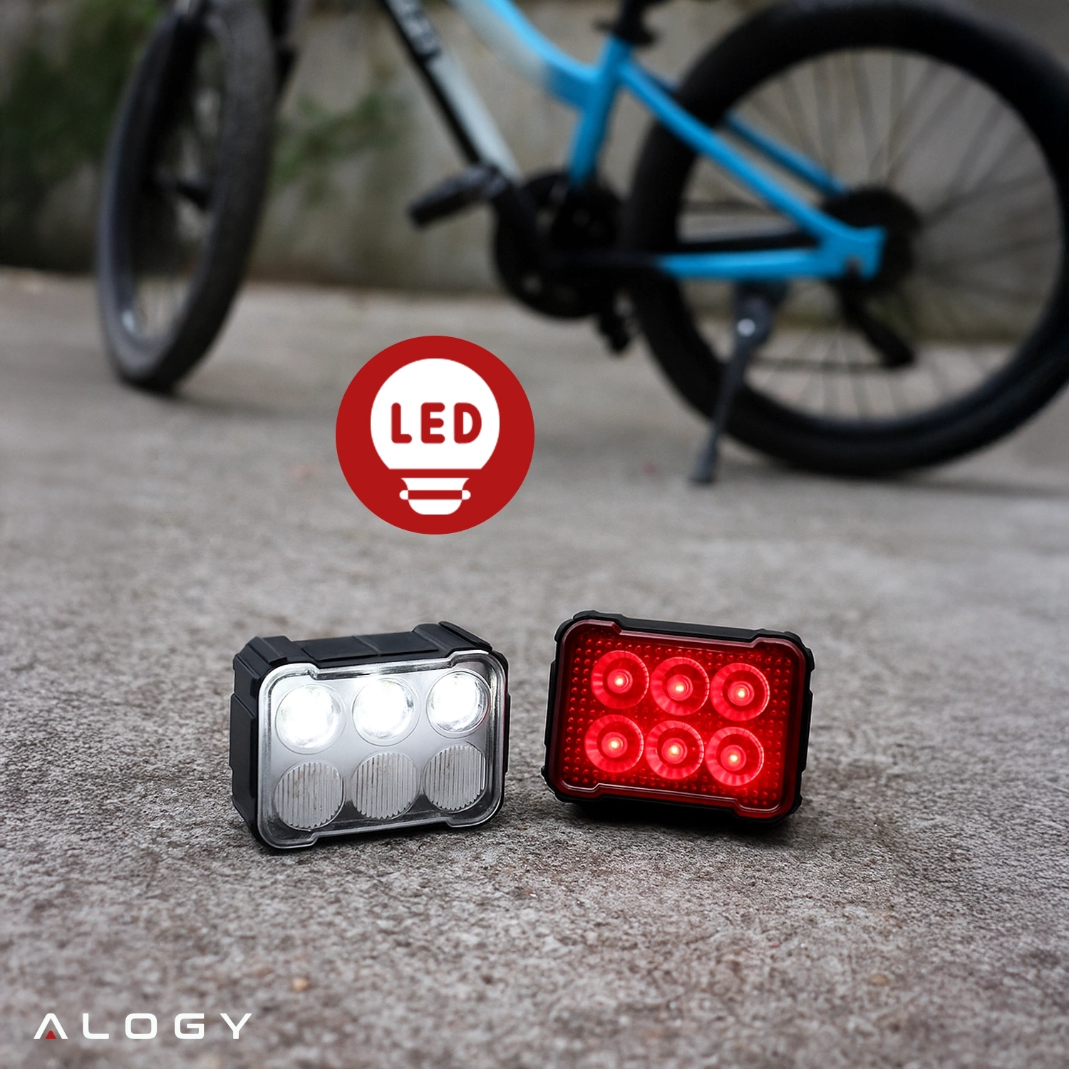 Alogy SafeRide™ LED svetlo na bicykel, vodeodolné predné a zadné svetlo, 2 kusy