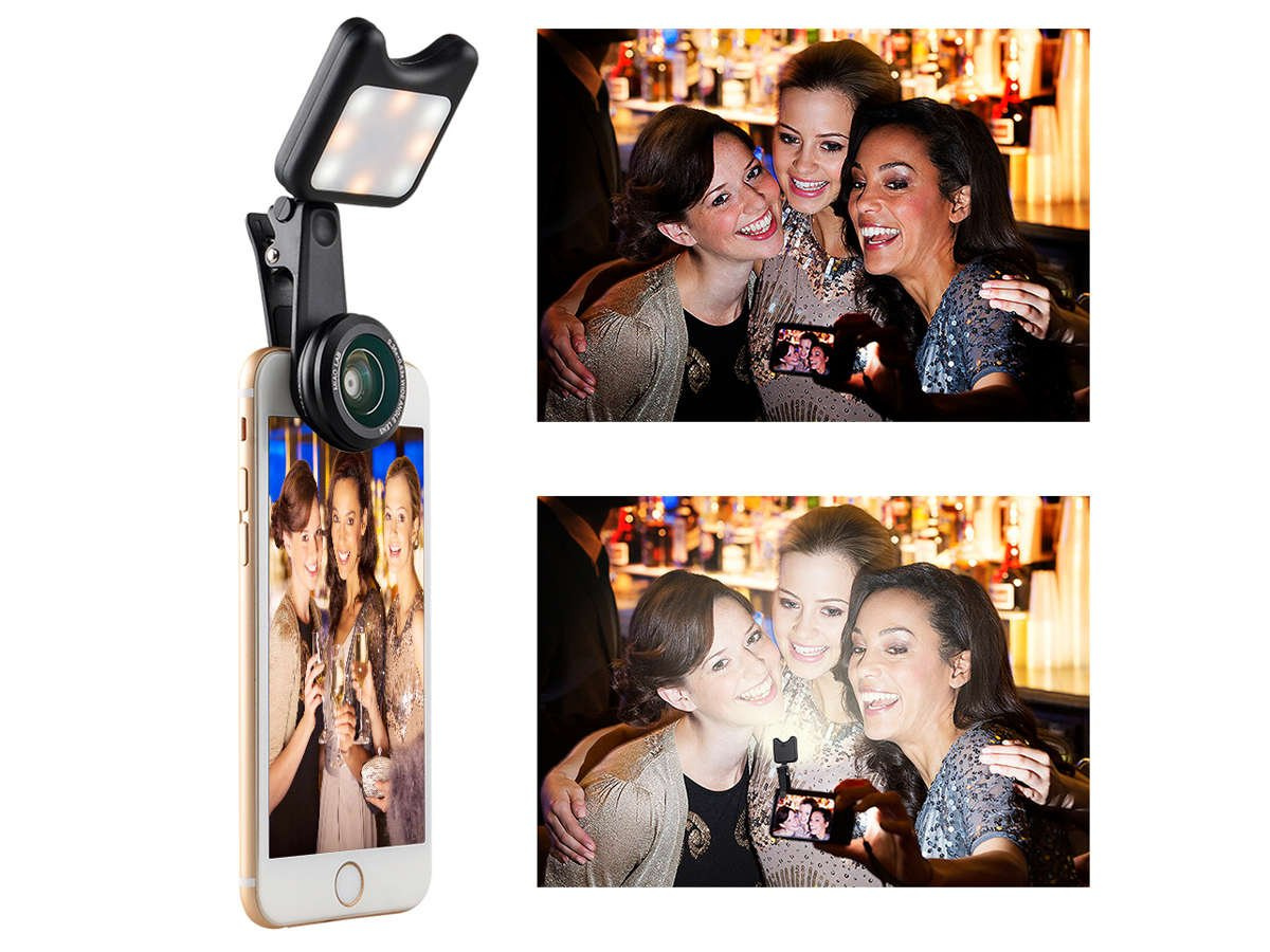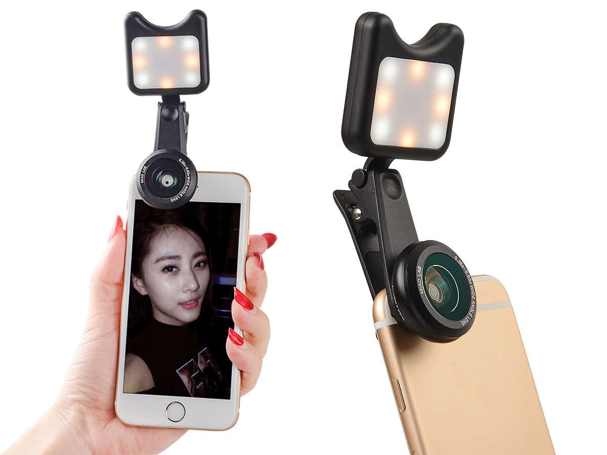 Sada navyše obsahuje LED svietidlo, ktoré sa dá jednoducho namontovať na hranu telefónu alebo na klip, na ktorom je nasadený objektív. LED lampa osvetľuje fotografie, čo vám umožní urobiť jasnú fotografiu vo dne aj v noci. LED lampa má až 9 režimov svietenia: 3 režimy so studeným aj teplým svetlom (1 režim najsilnejšieho svetla, 2 režim slabšieho svetla, 3 režim najslabšieho svetla), 3 režimy so studeným svetlom (režimy svietenia ako predtým) a 3 režimy s teplým svetlom (režimy osvetlenia ako predtým).