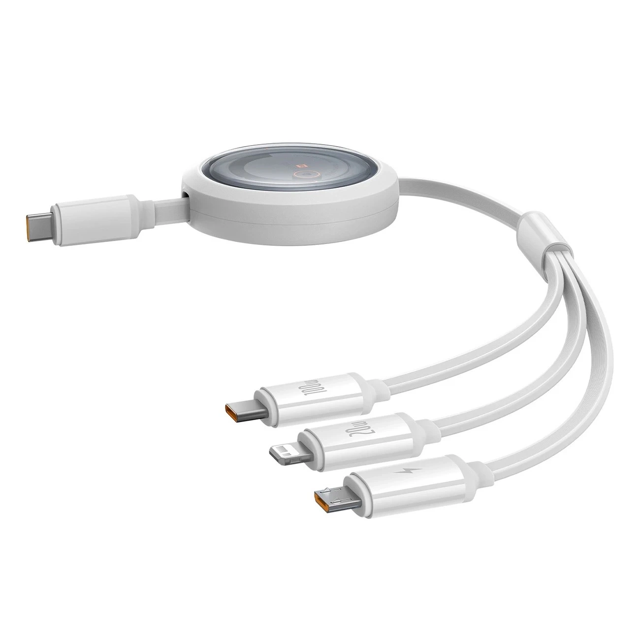 Navíjací kábel Baseus Free2Draw s konektormi USB-C - Lightning / USB-C / micro USB, výkon až 100 W a dĺžka 1,1 m - biela