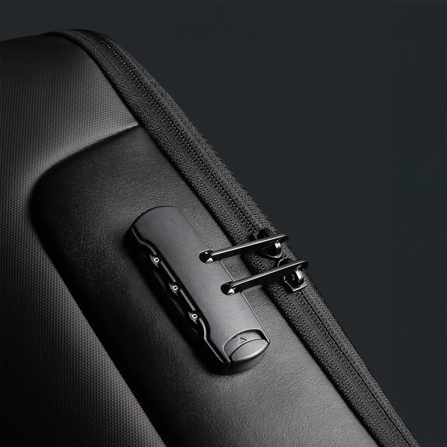 Hlavná priehradka, v ktorej nosíme notebook, je zabezpečená visiacim zámkom s trojmiestnym kódom.