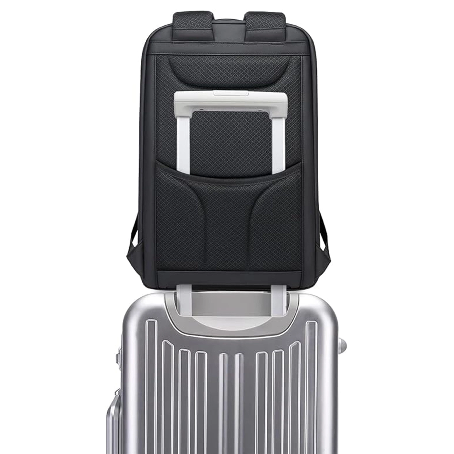 Na zadnej strane pod ramennými popruhmi sa nachádza diskrétne vrecko na zips a opasok, ktorý umožňuje nasadenie batohu na rúčku cestovnej tašky.