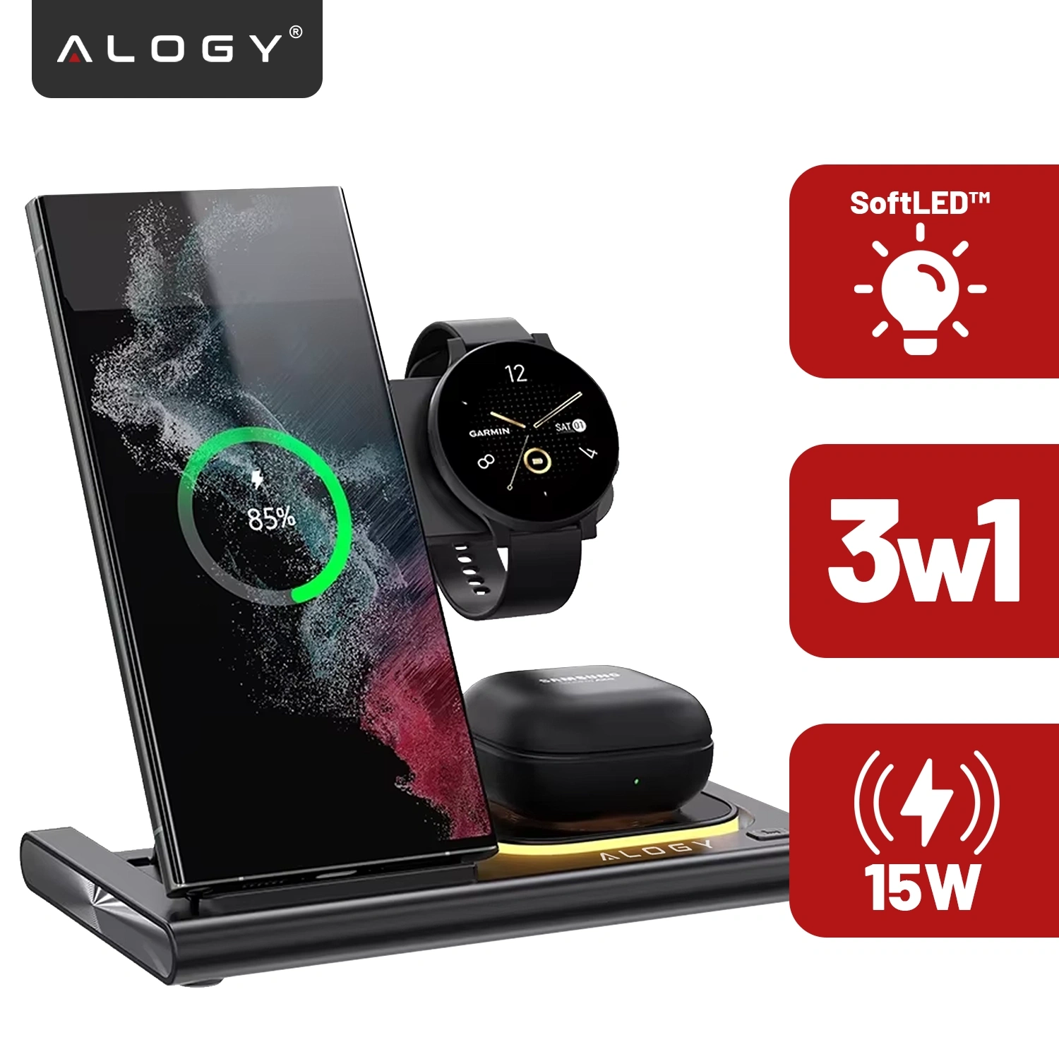 ⭐ Multifunkčná indukčná nabíjačka Alogy je inovatívne zariadenie, ktoré umožňuje súčasne nabíjať tri rôzne zariadenia.