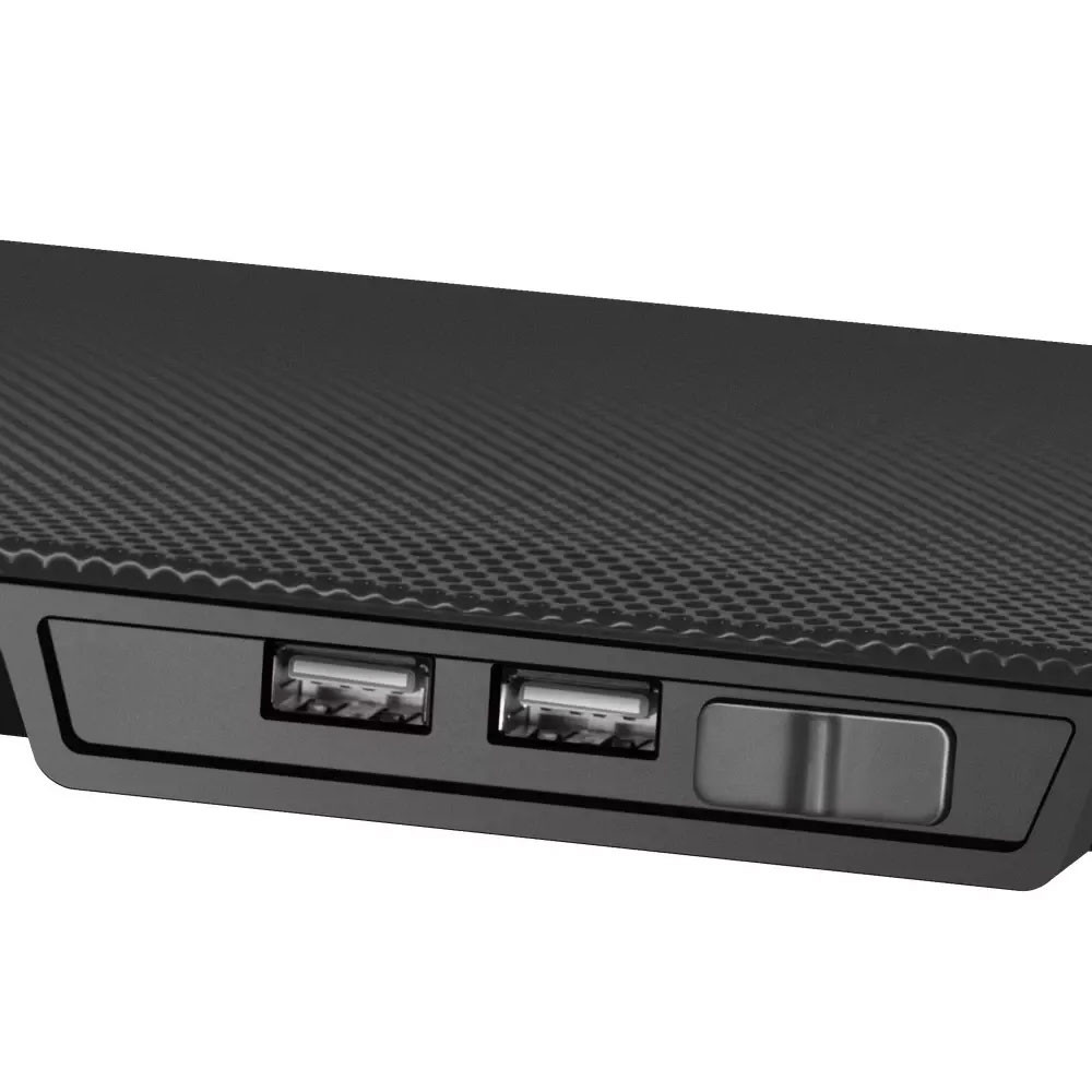 Odolný, pohodlný a ľahko prenosný stojan je kompatibilný so všetkými typmi notebookov a notebookov. Navyše má modré LED podsvietenie, ktoré zvýrazňuje jeho moderný dizajn. Podložka je vybavená aj tlačidlom On / Off a 2 dodatočnými USB portami, ku ktorým môžete pripojiť ďalšie externé príslušenstvo alebo nabíjací kábel.