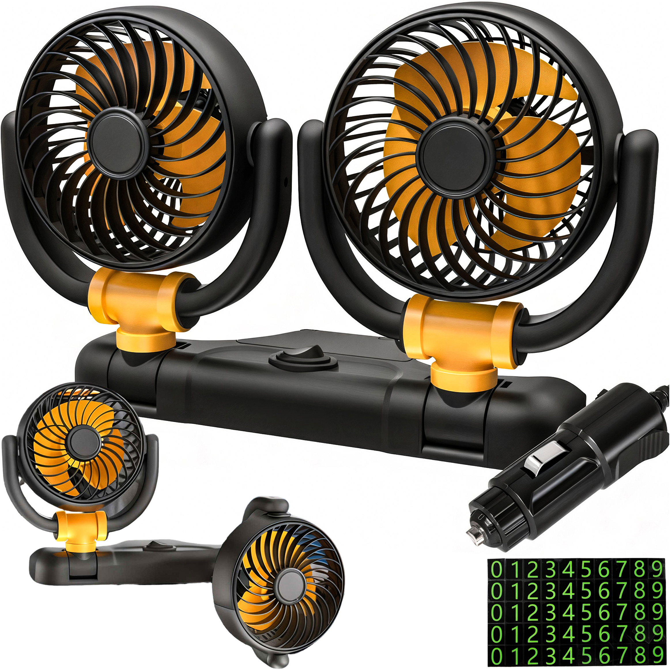 - Sada obsahuje: Dvojitý ventilátor, gumené montážne nálepky, sada digitálnych nálepiek